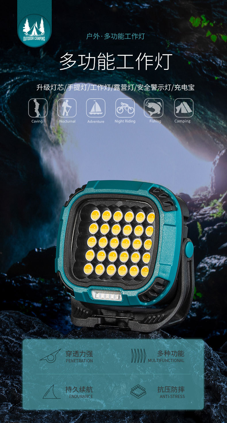 야외 캠핑 램프 강한 가벼운 캠핑 램프 휴대용 충전식 강한 자기 투광 조명 cob 작업 램프 야외 램프스토어 가기