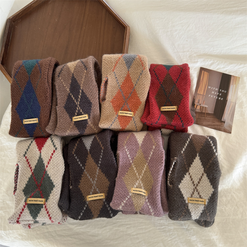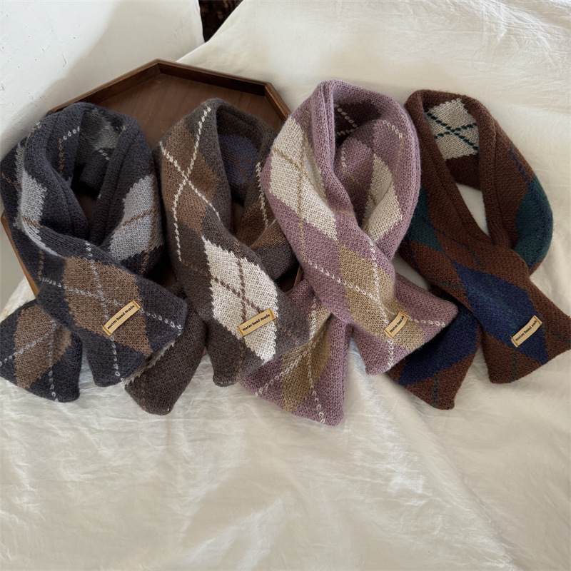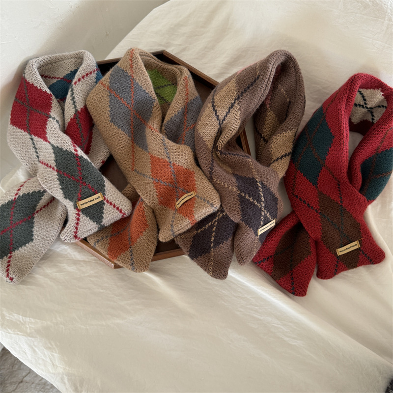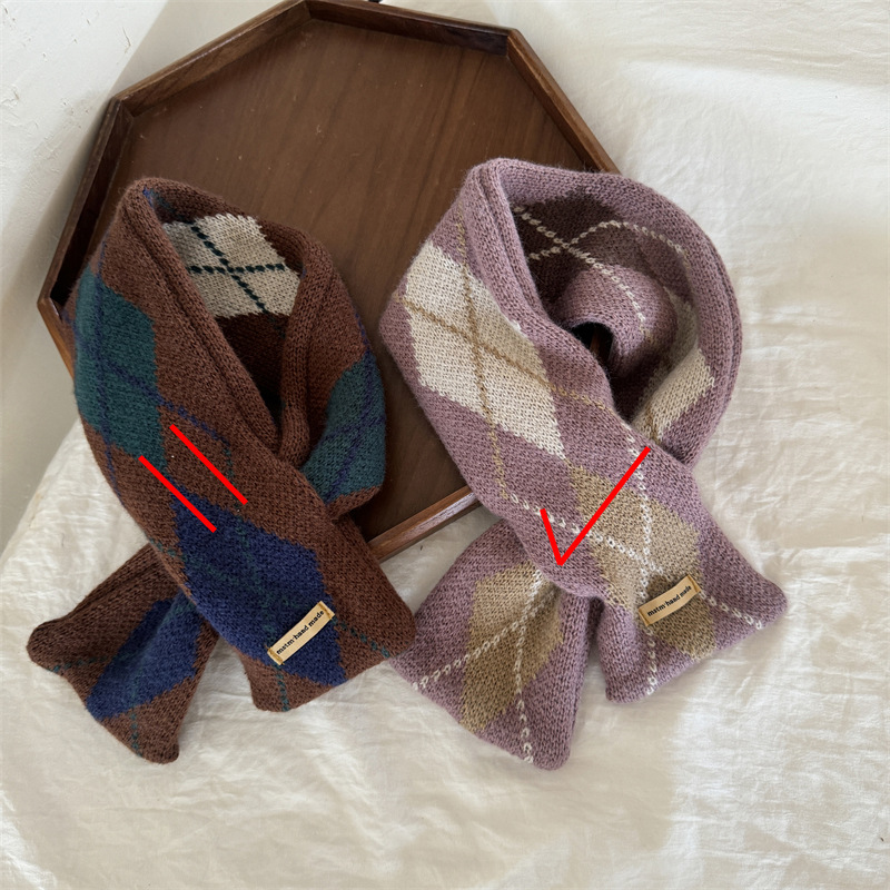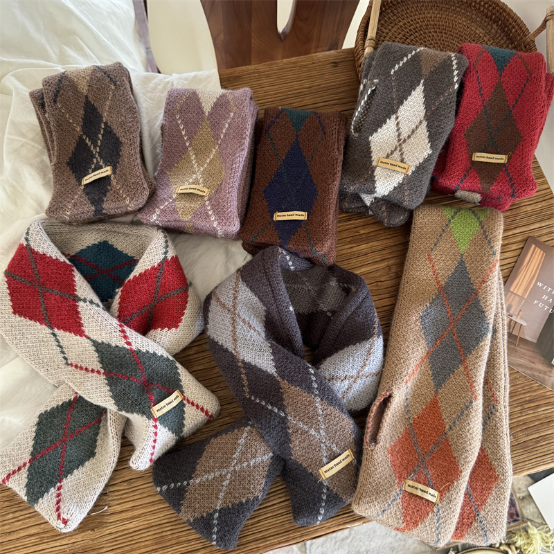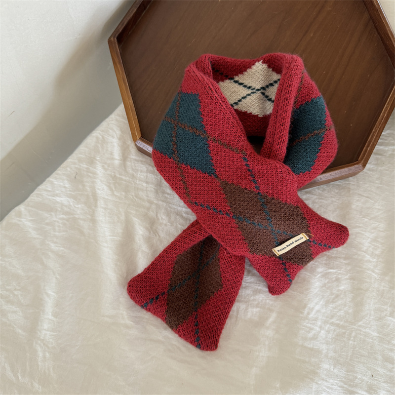 남학생과 여학생을위한 한국 스타일의 다목적 빈티지 영어 어린이 크로스 스카프 서양식 니트 스카프 가을과 겨울 아기 따뜻한