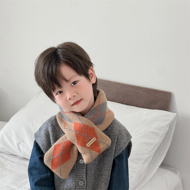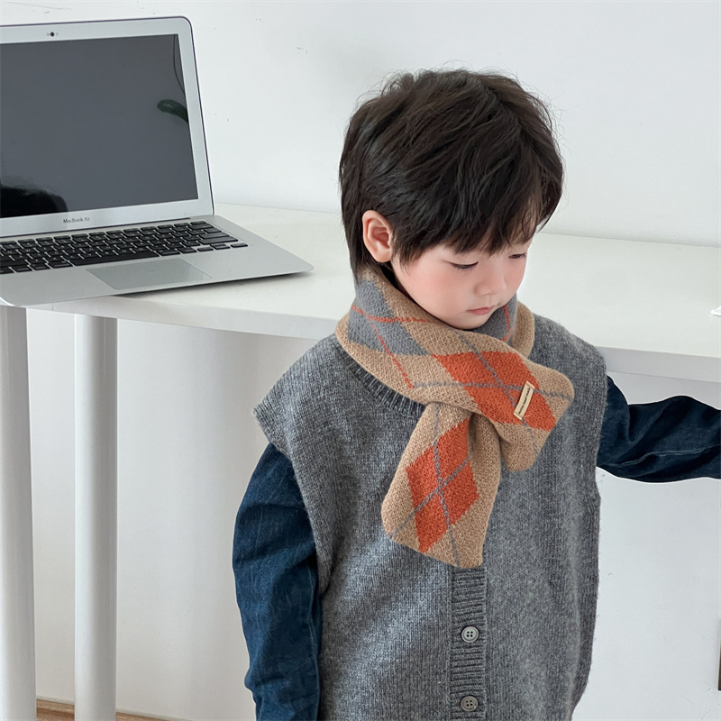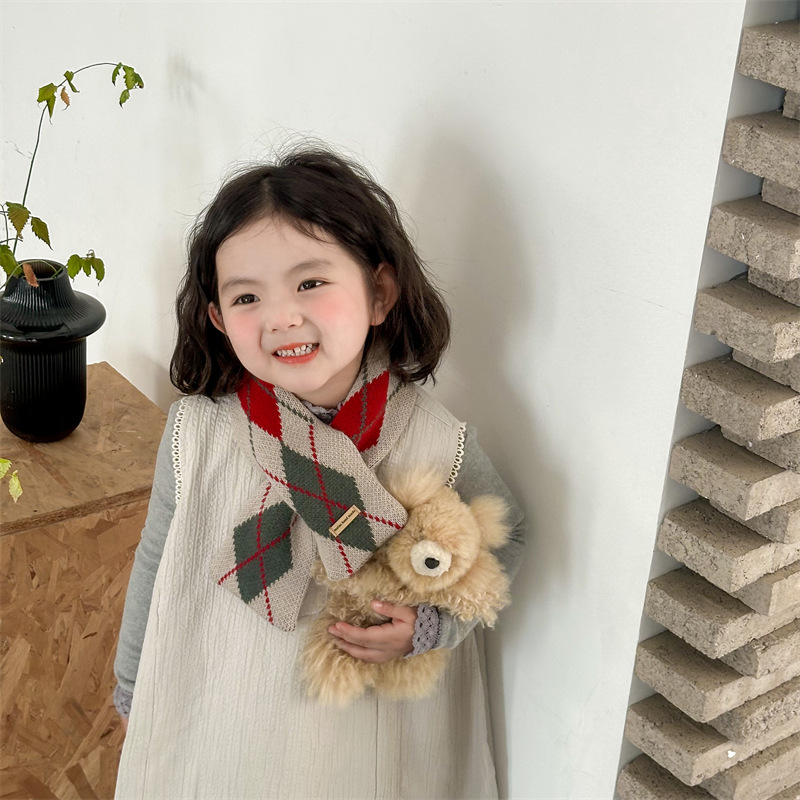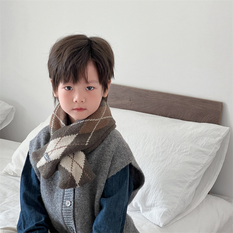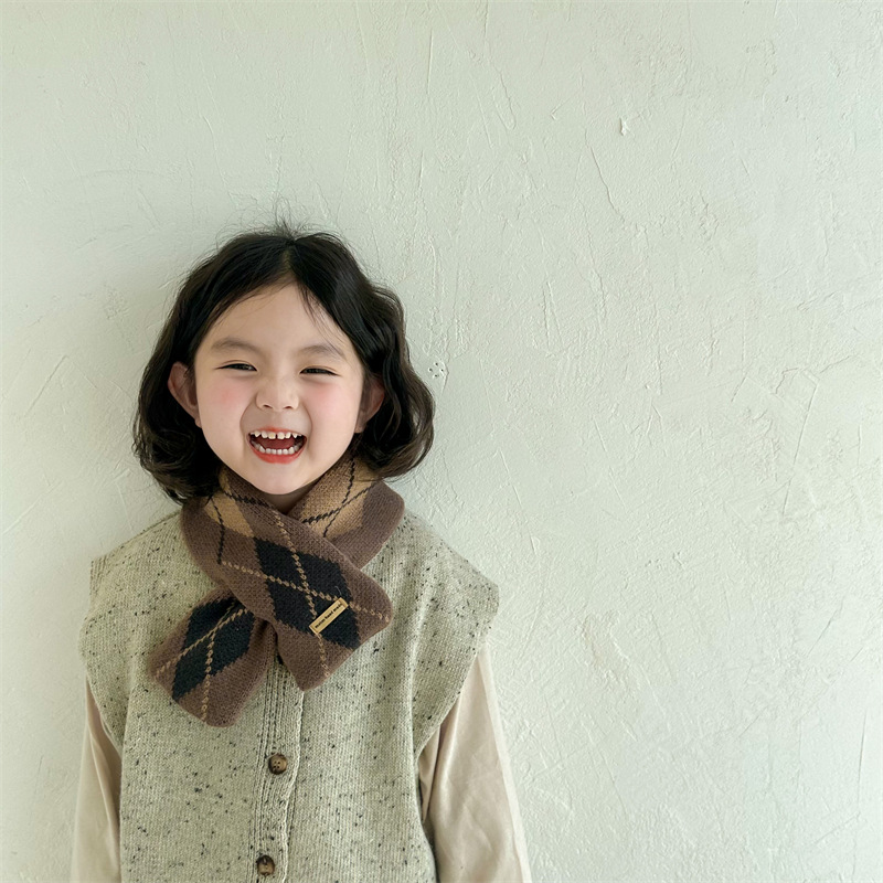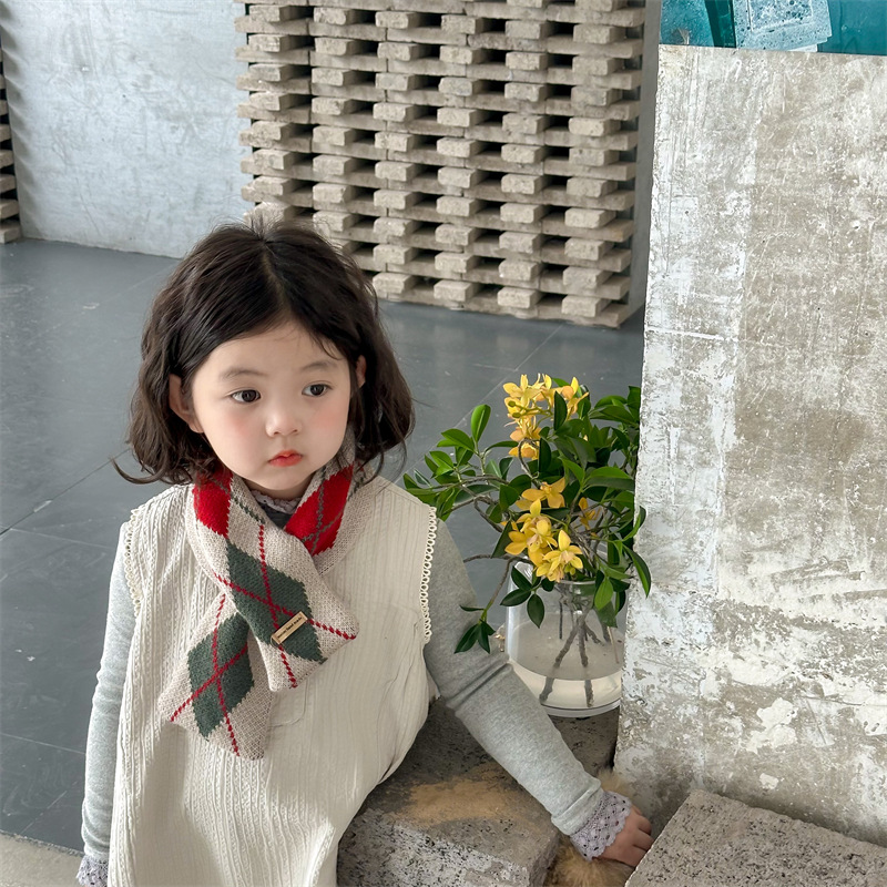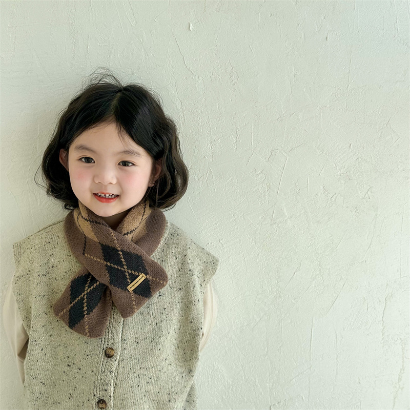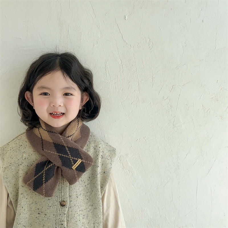 남학생과 여학생을위한 한국 스타일의 다목적 빈티지 영어 어린이 크로스 스카프 서양식 니트 스카프 가을과 겨울 아기 따뜻한스토어 가기