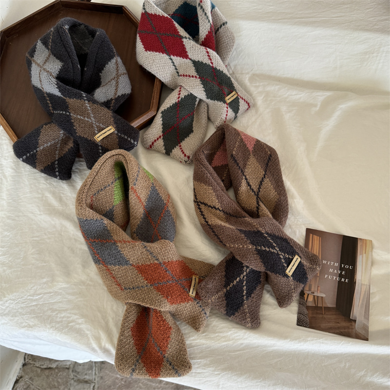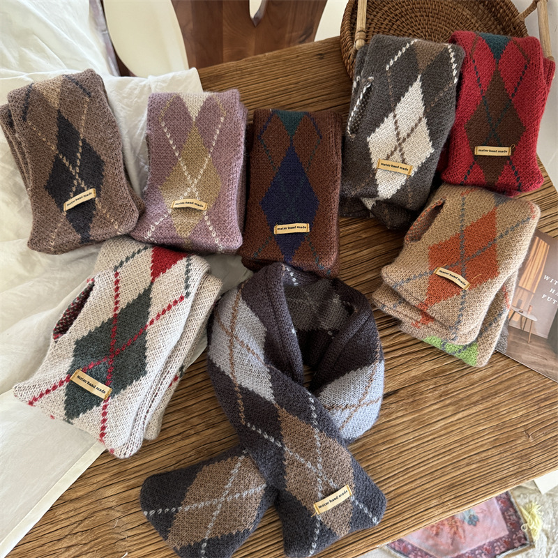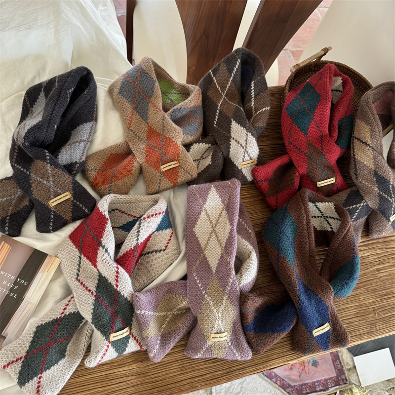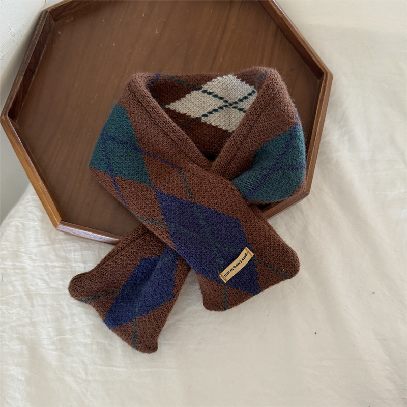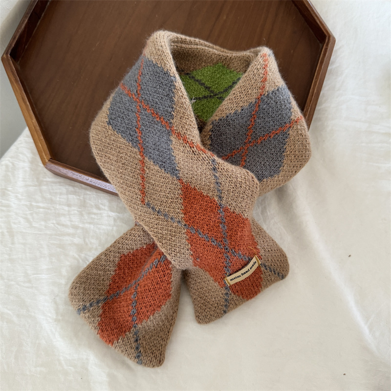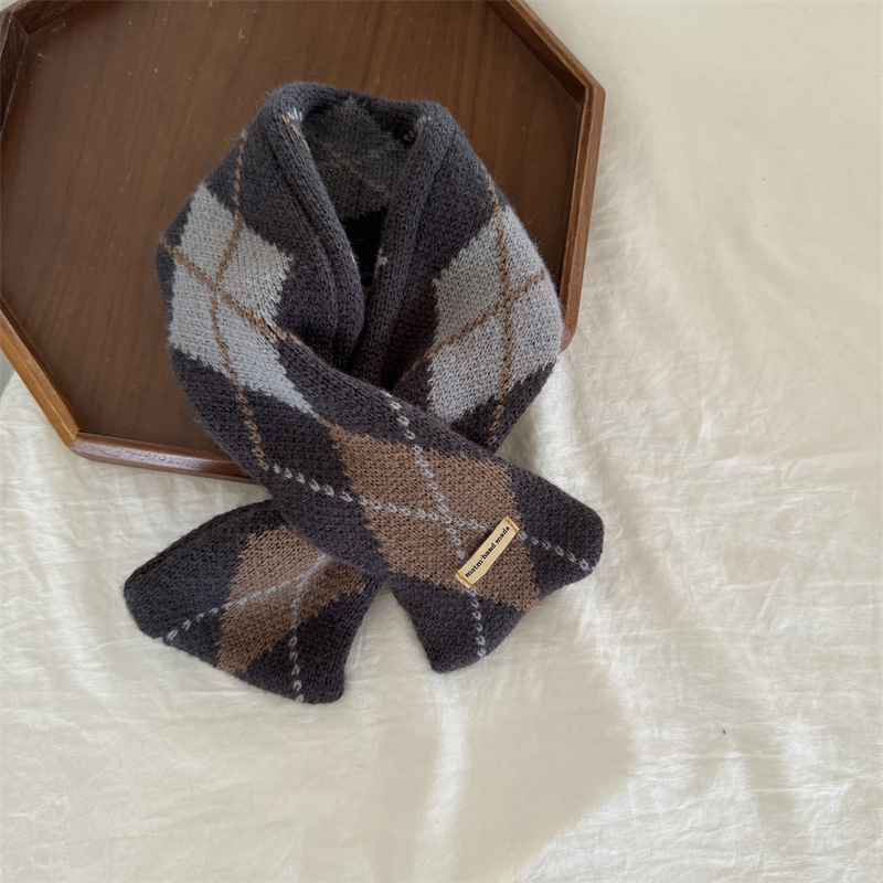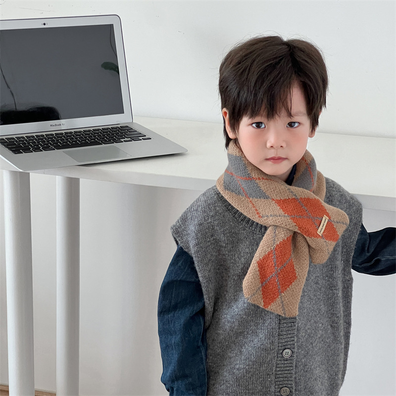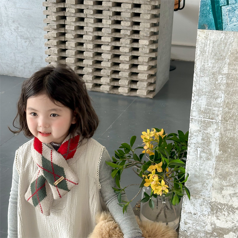 남학생과 여학생을위한 한국 스타일의 다목적 빈티지 영어 어린이 크로스 스카프 서양식 니트 스카프 가을과 겨울 아기 따뜻한스토어 가기