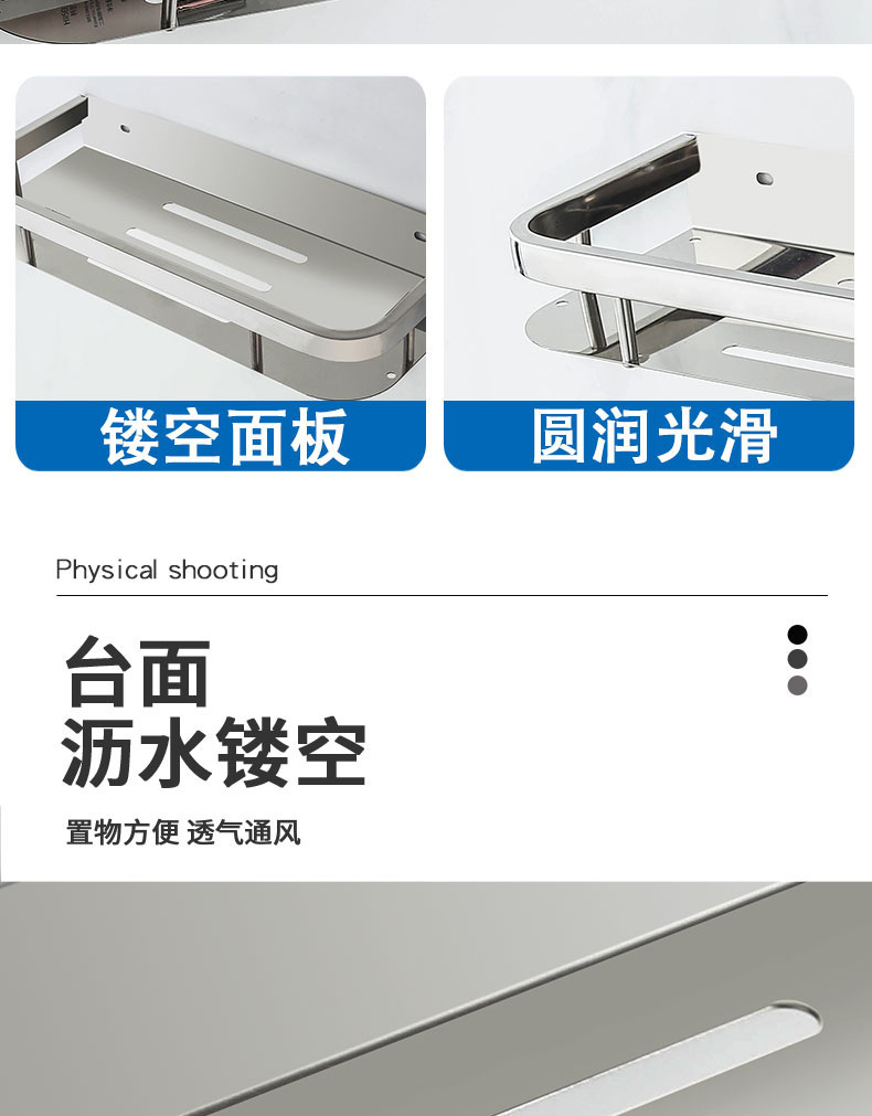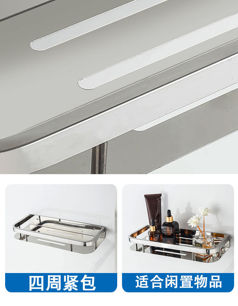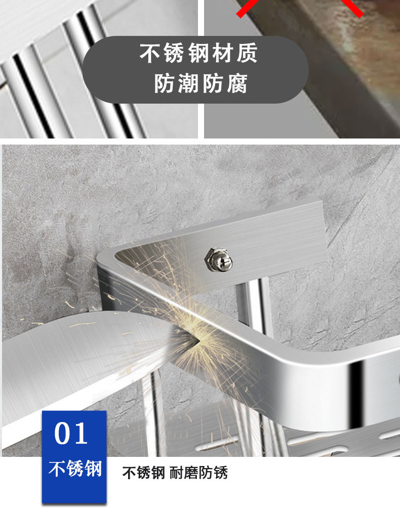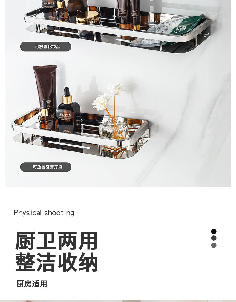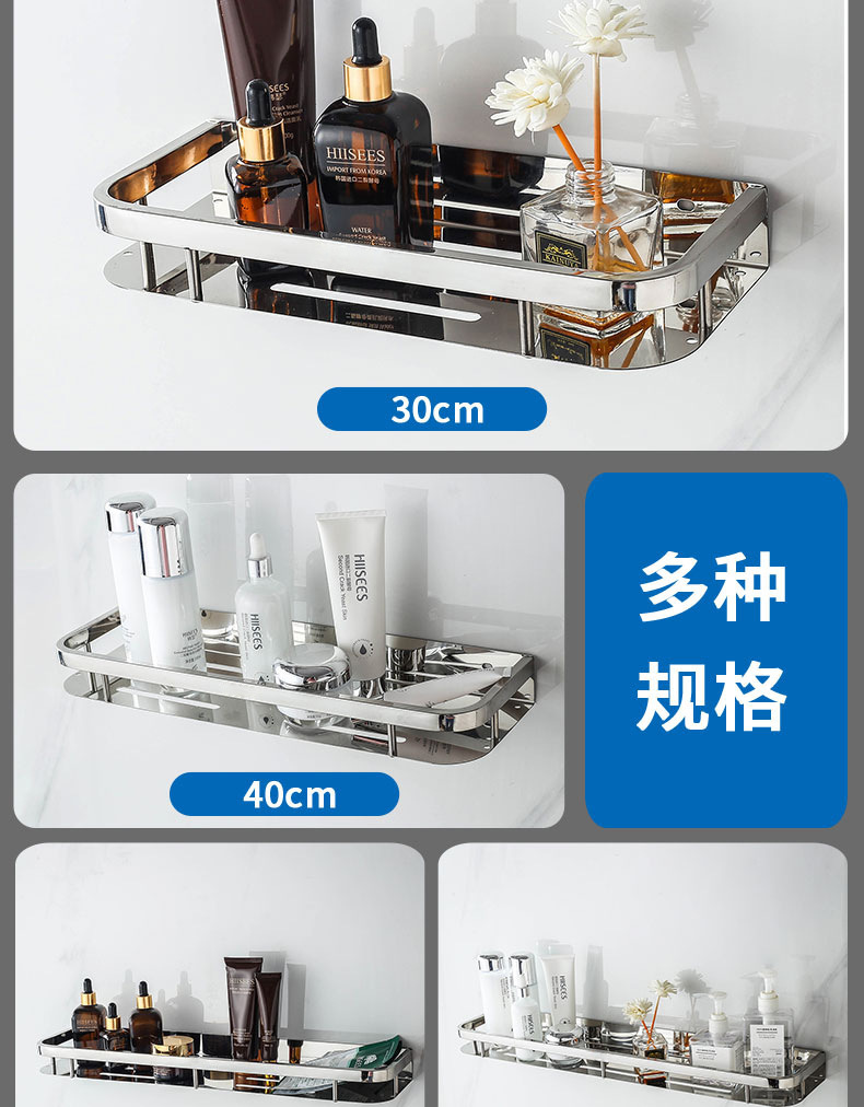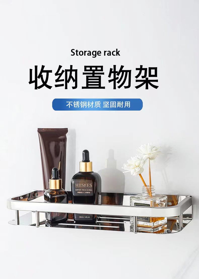 주방 및 욕실 스테인레스 스틸 스퀘어 랙 욕실 가정용 욕실 벽걸이 주방 보관 랙 싱글 레이어 펀치 프리스토어 가기