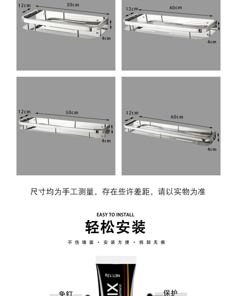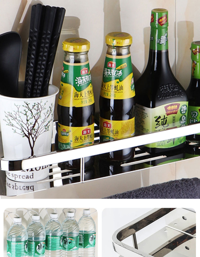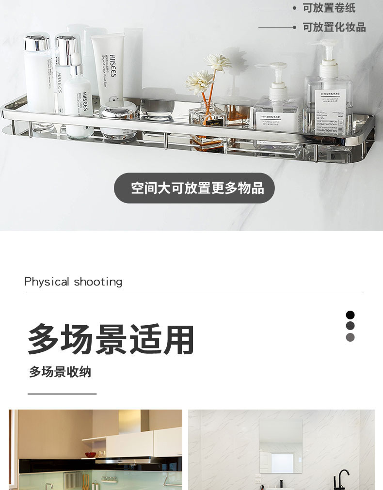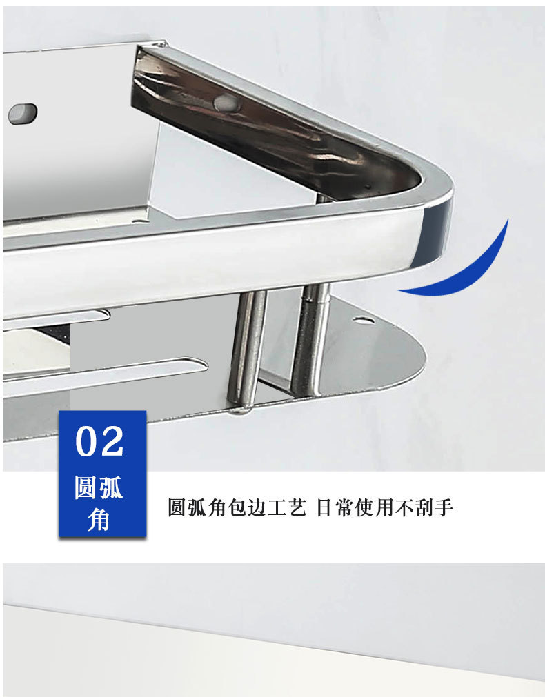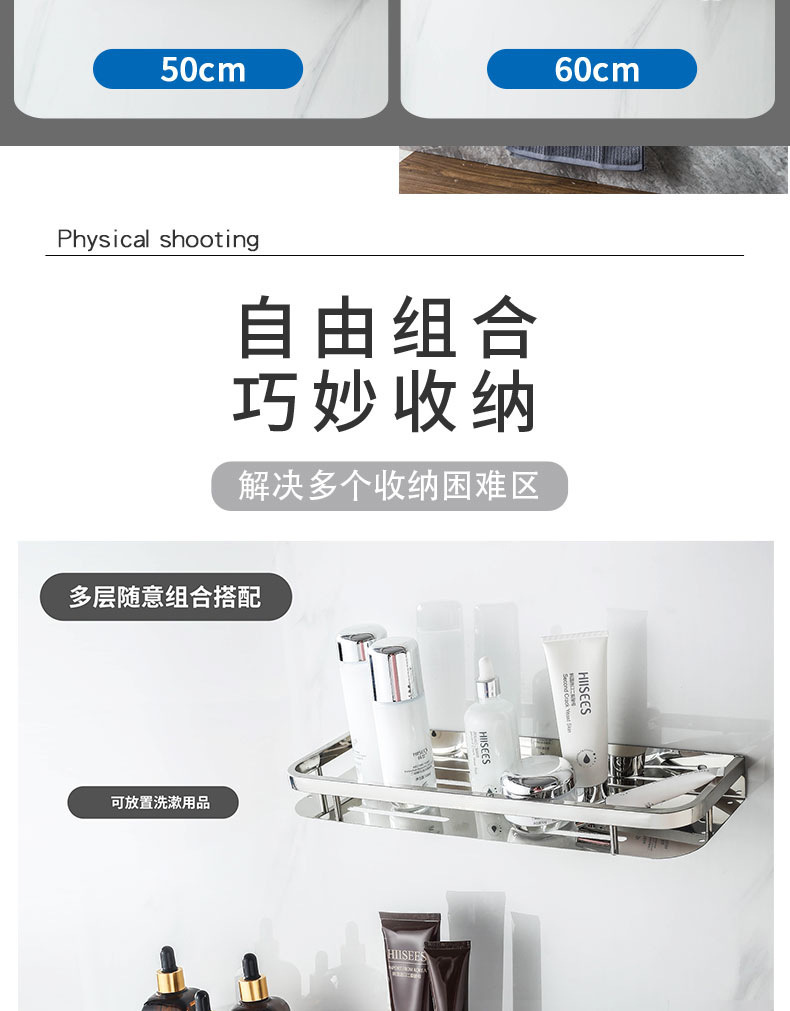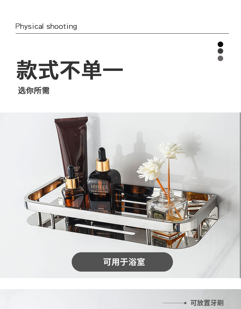주방 및 욕실 스테인레스 스틸 스퀘어 랙 욕실 가정용 욕실 벽걸이 주방 보관 랙 싱글 레이어 펀치 프리스토어 가기