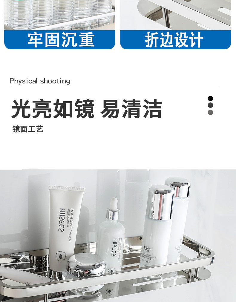 주방 및 욕실 스테인레스 스틸 스퀘어 랙 욕실 가정용 욕실 벽걸이 주방 보관 랙 싱글 레이어 펀치 프리