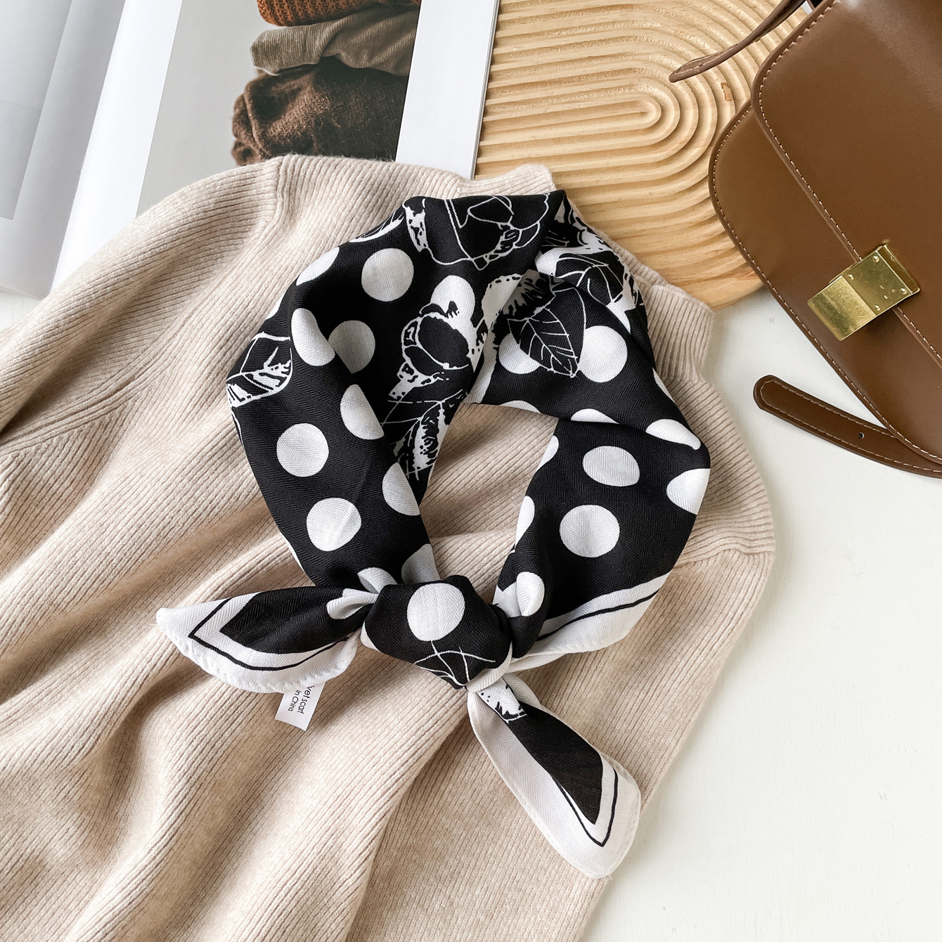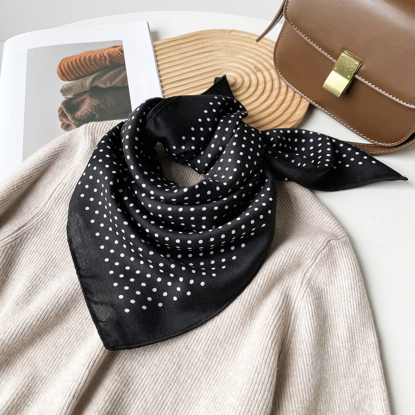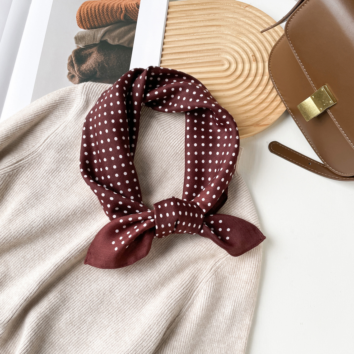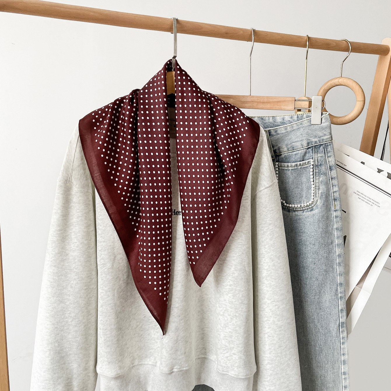 의류 정리 한국 스타일 레트로 패션 스카프 버건디 폴라 도트 인쇄 작은 광장 고급 실크 스카프 여성 스카프