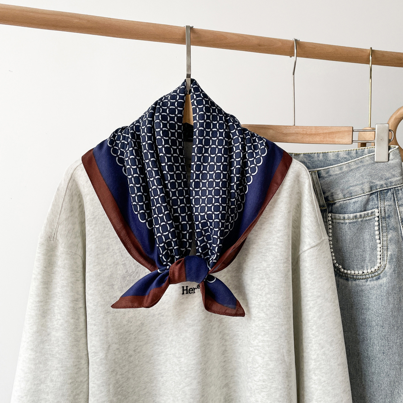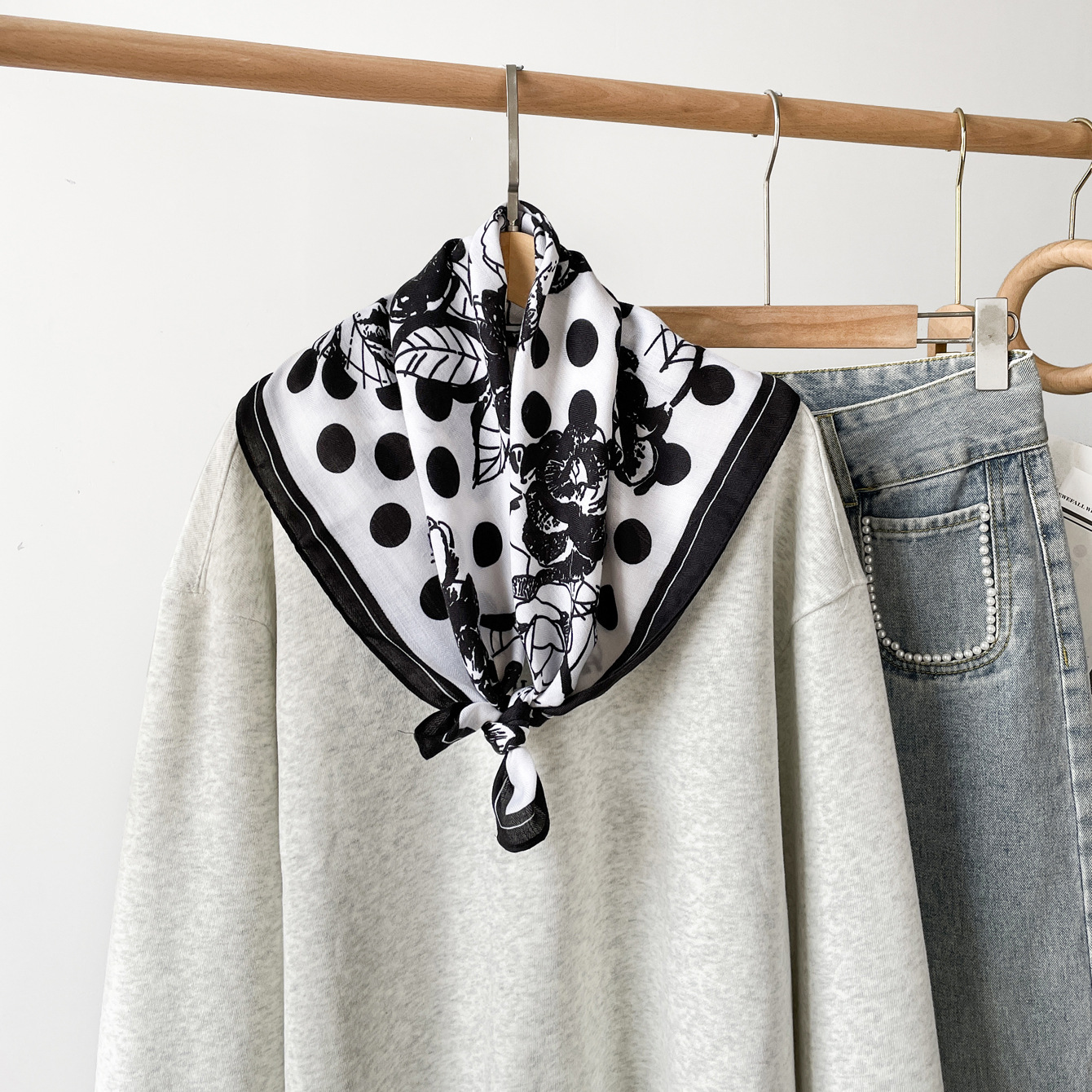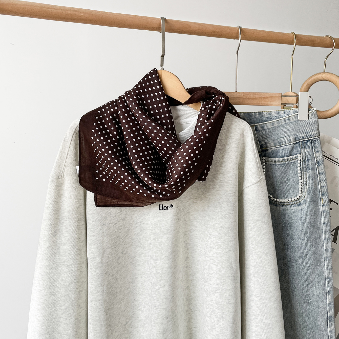 의류 정리 한국 스타일 레트로 패션 스카프 버건디 폴라 도트 인쇄 작은 광장 고급 실크 스카프 여성 스카프