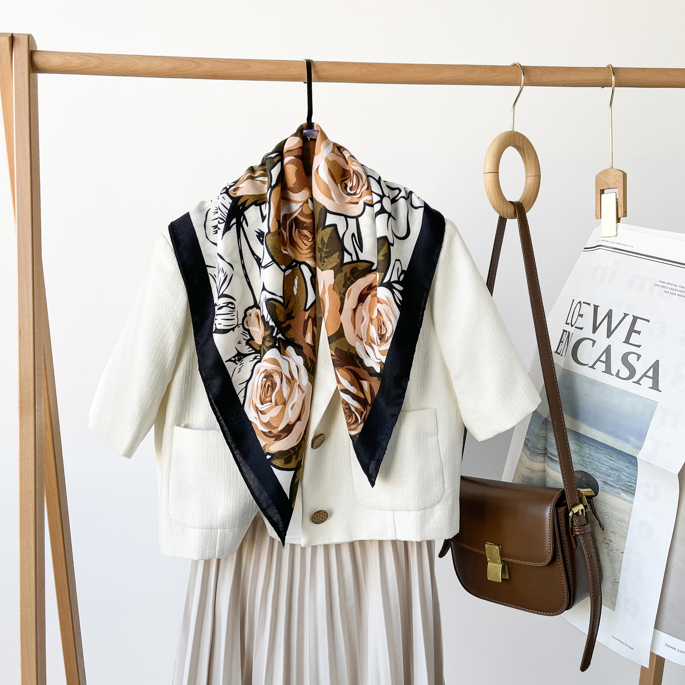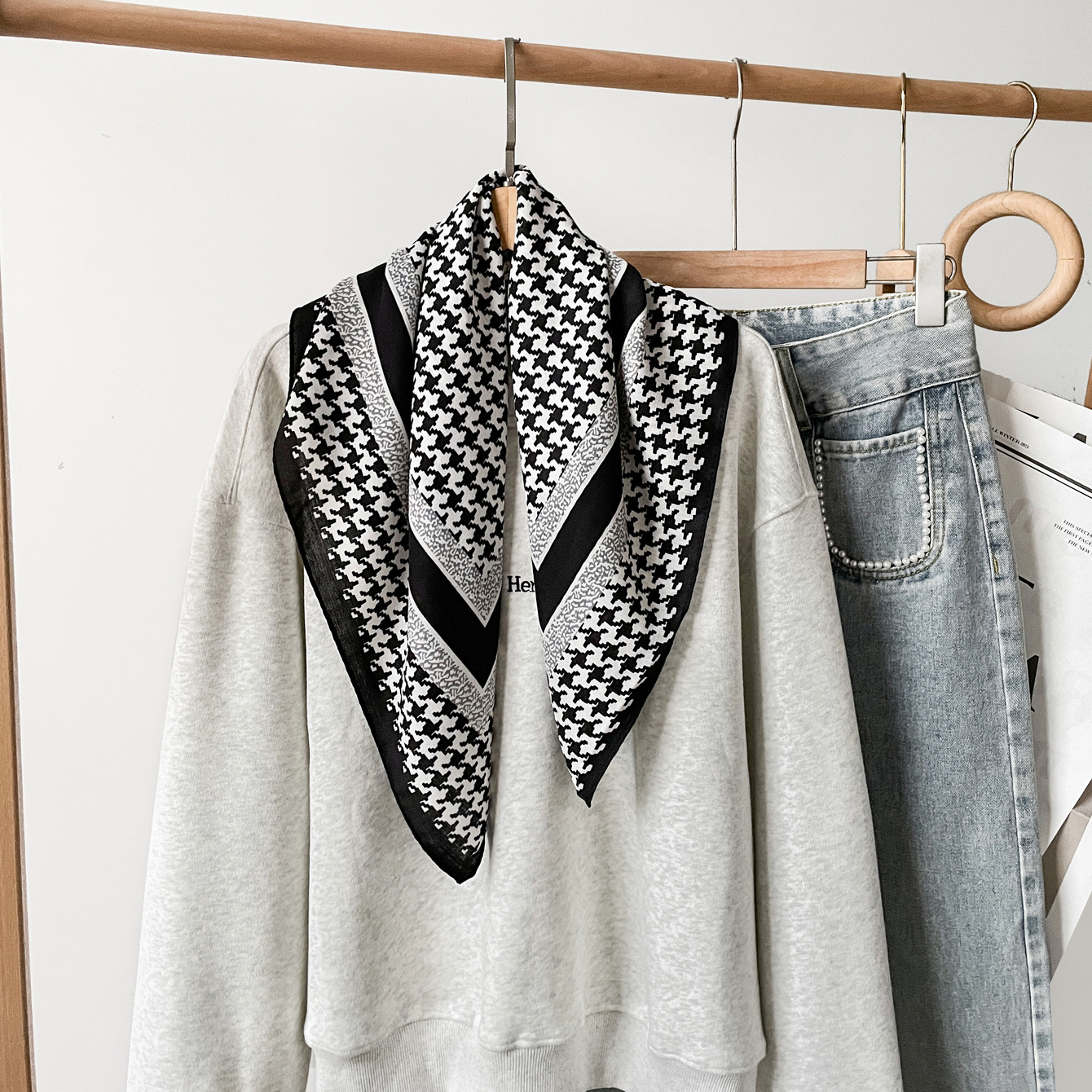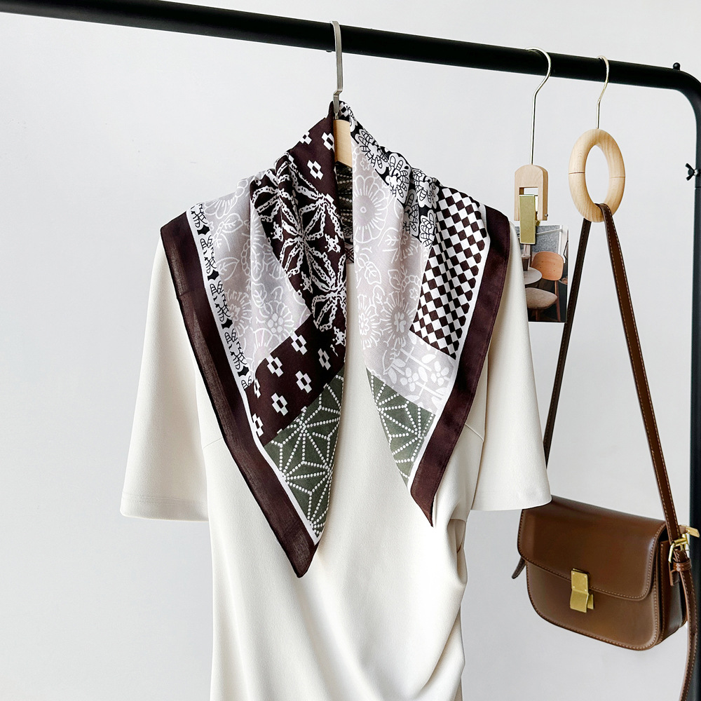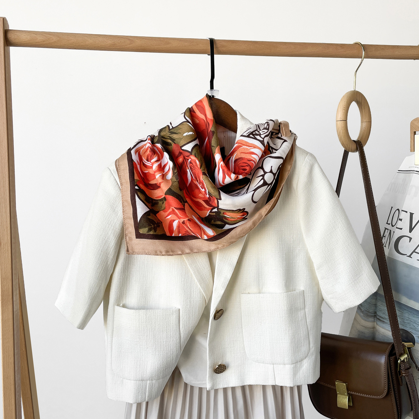 의류 정리 한국 스타일 레트로 패션 스카프 버건디 폴라 도트 인쇄 작은 광장 고급 실크 스카프 여성 스카프