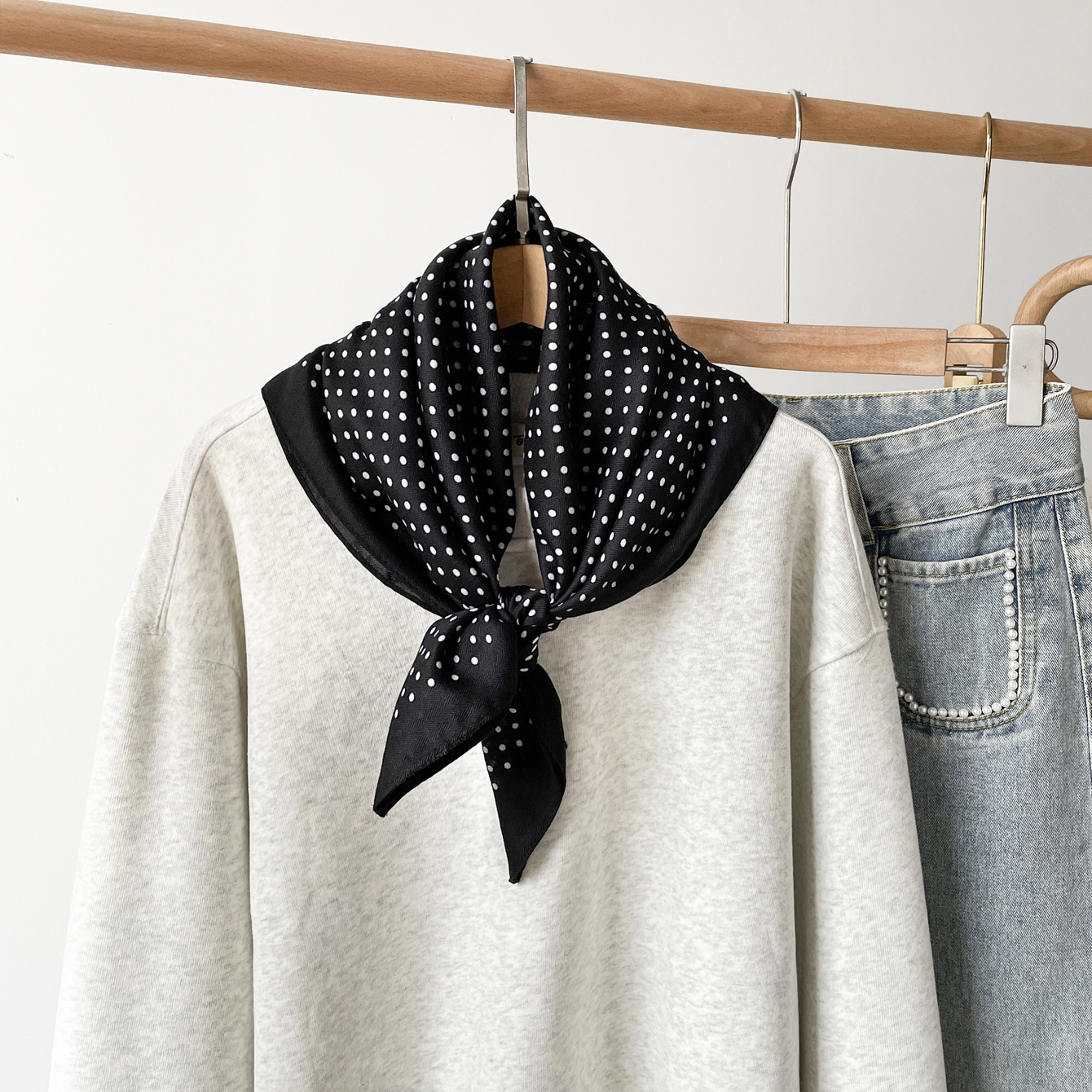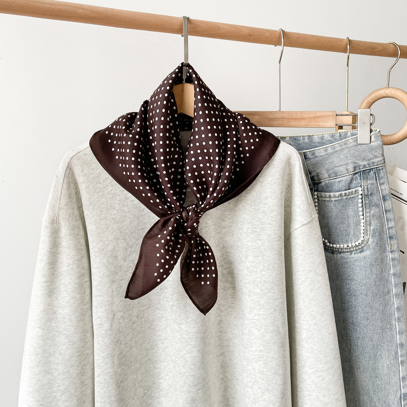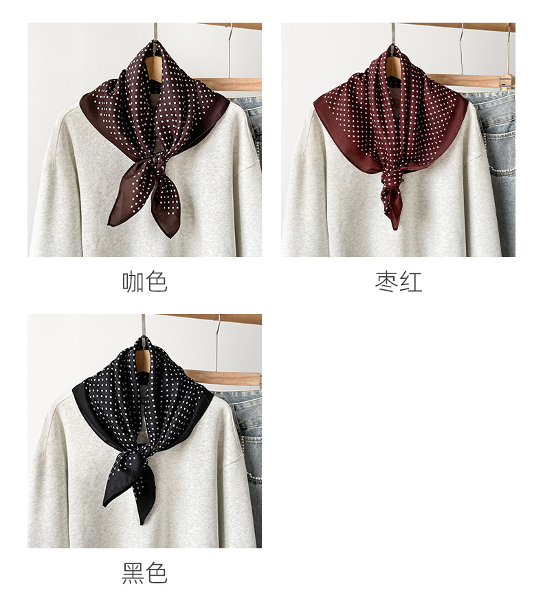 의류 정리 한국 스타일 레트로 패션 스카프 버건디 폴라 도트 인쇄 작은 광장 고급 실크 스카프 여성 스카프스토어 가기