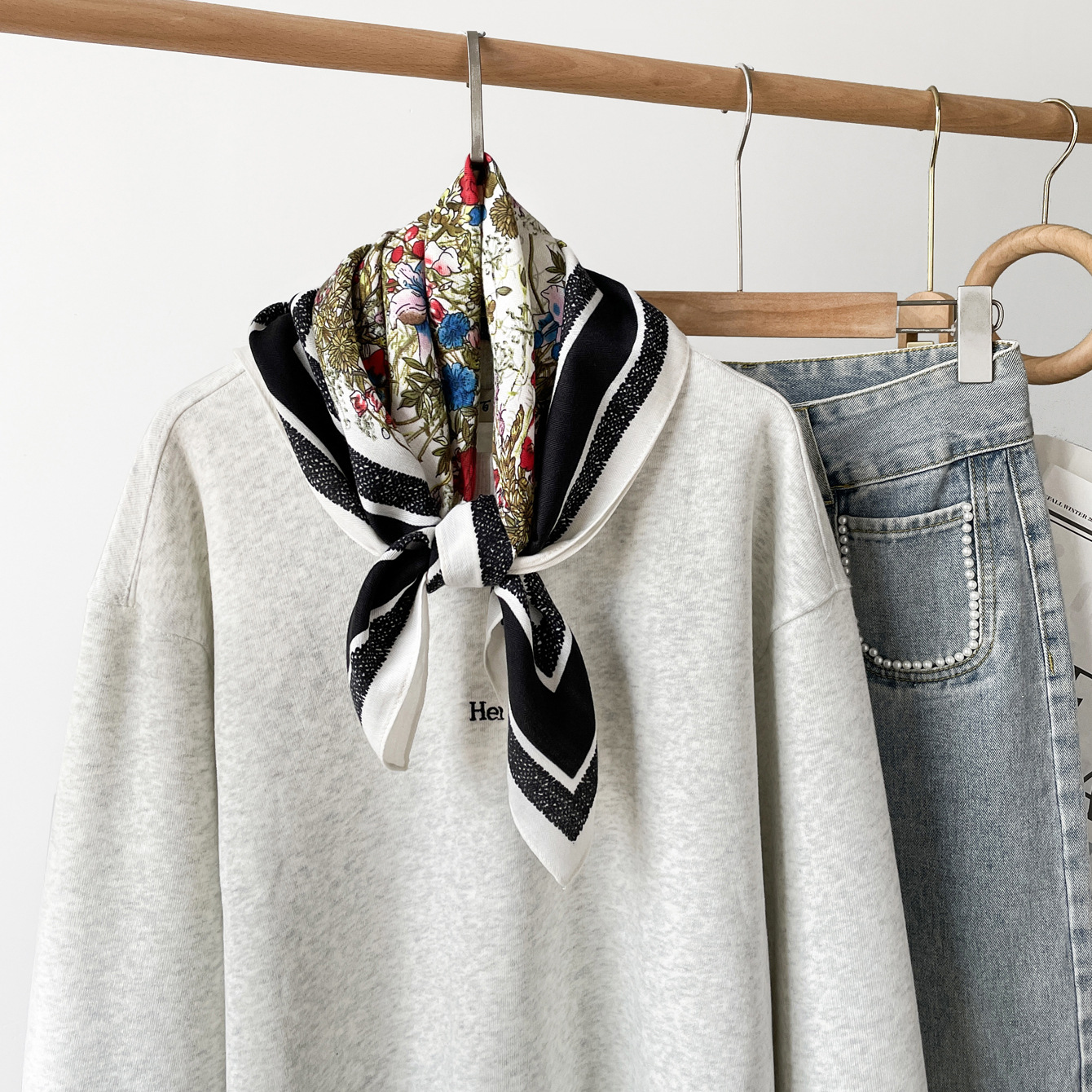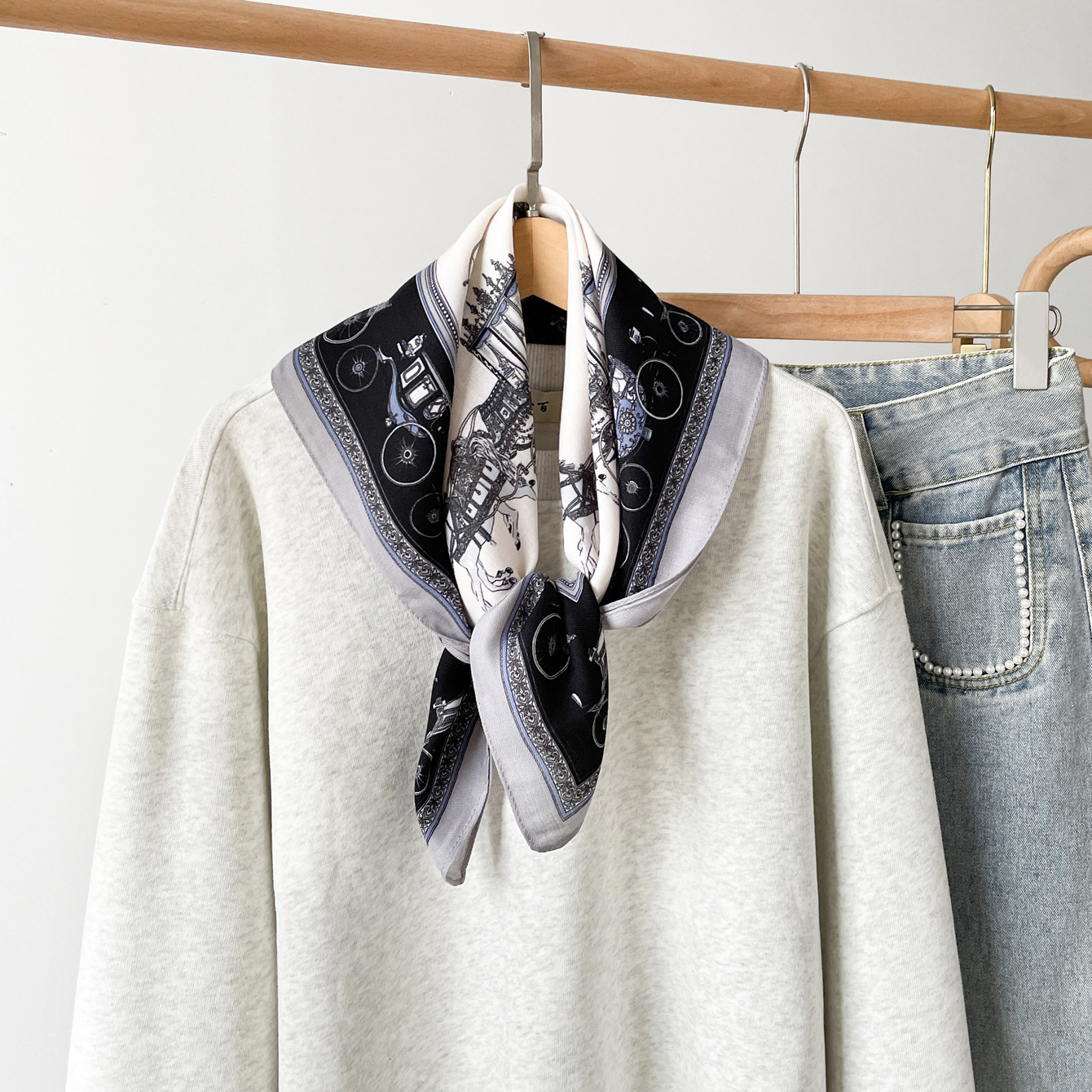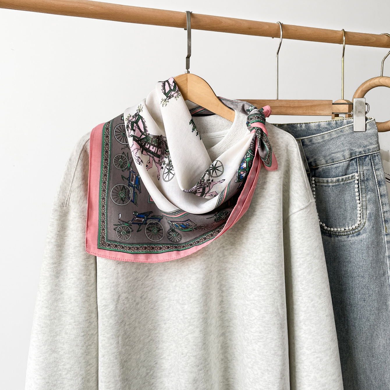 의류 정리 한국 스타일 레트로 패션 스카프 버건디 폴라 도트 인쇄 작은 광장 고급 실크 스카프 여성 스카프스토어 가기