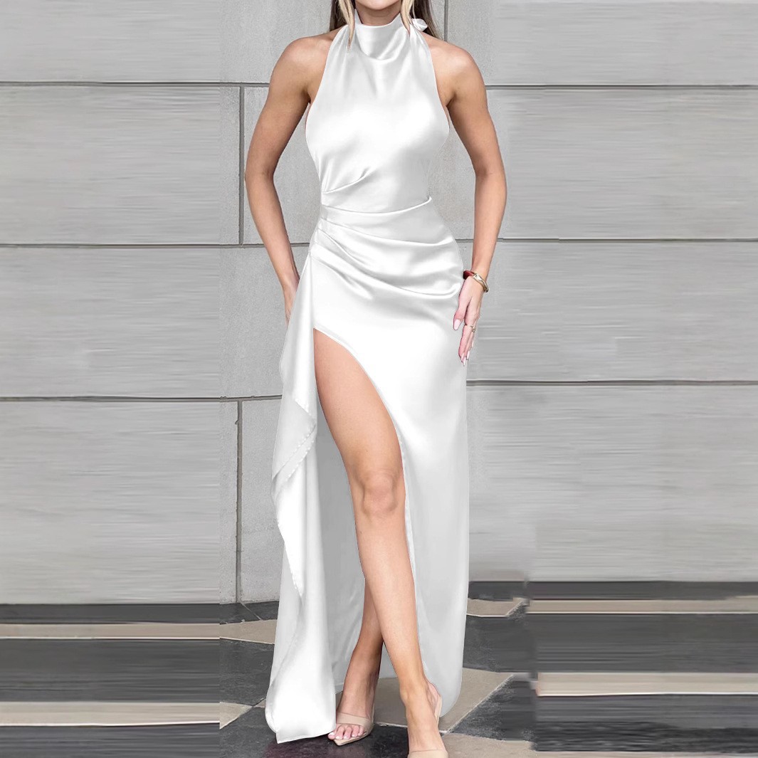 국경을 넘는 새로운 라운드 넥 가을 원피스 유럽과 미국 여성의 섹시한 분할 레이스 업 백리스 플리츠 백 힙 원피스스토어 가기