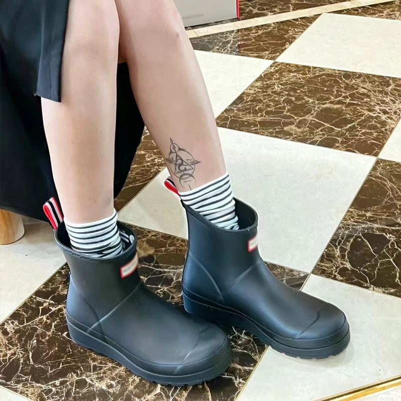 Yi Mengling 같은 스타일 장화 여성용 플러스 사이즈 짧은 장화 방수 미끄럼 방지 경량화 고무 인터넷 남성과 여성에게 인기스토어 가기