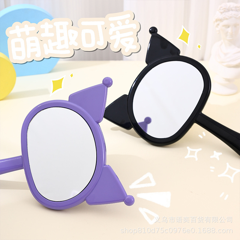 Kulomi 휴대용 메이크업 거울 학생 휴대용 만화 거울 창조적 인 만화 손잡이 귀여운 장식품 메이크업 거울