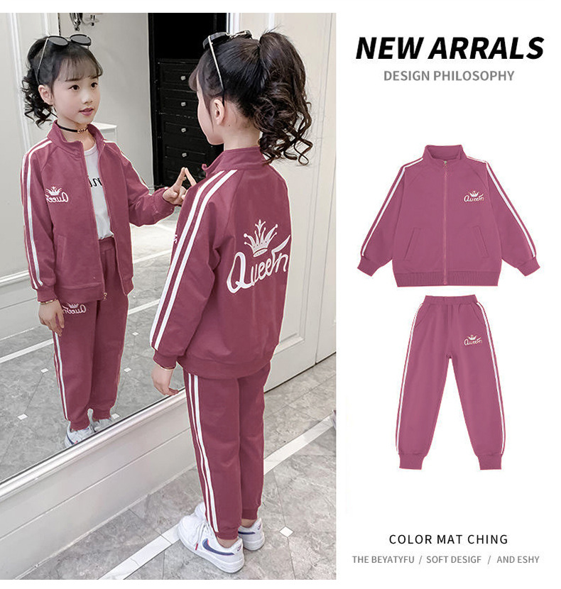 여아 정장 봄 가을 신작 아동복, 패셔너블한 인터넷 연예인 트렌디 재킷, 스웨트팬츠, 캐주얼 스포츠 투피스 세트