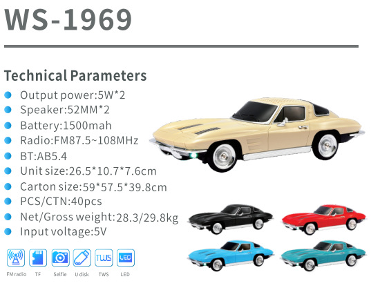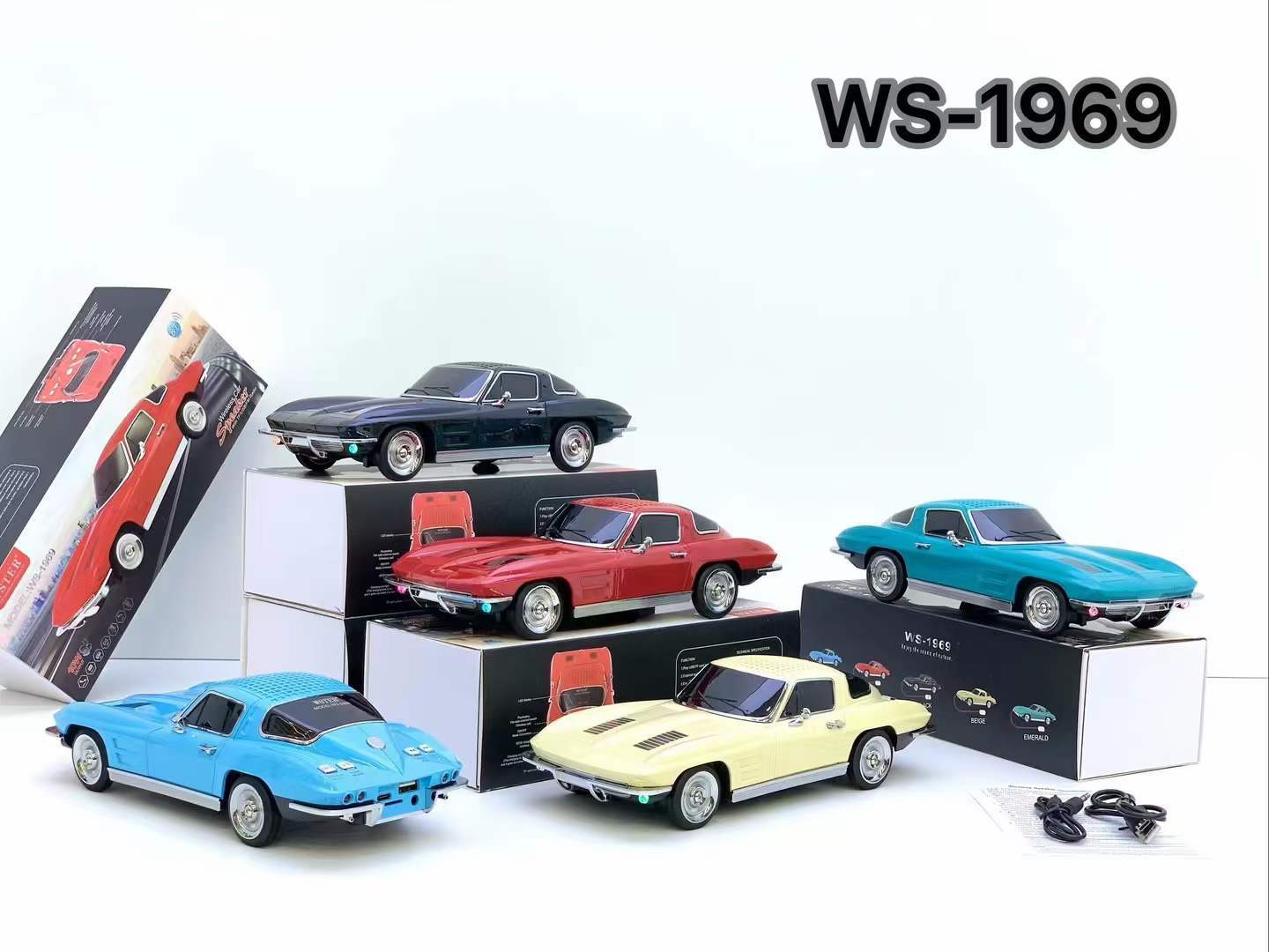 새로운 WS1969 자동차 블루투스 오디오 창조적 인 장식품 복고풍 자동차 모양 서브 우퍼 무선 블루투스 스피커