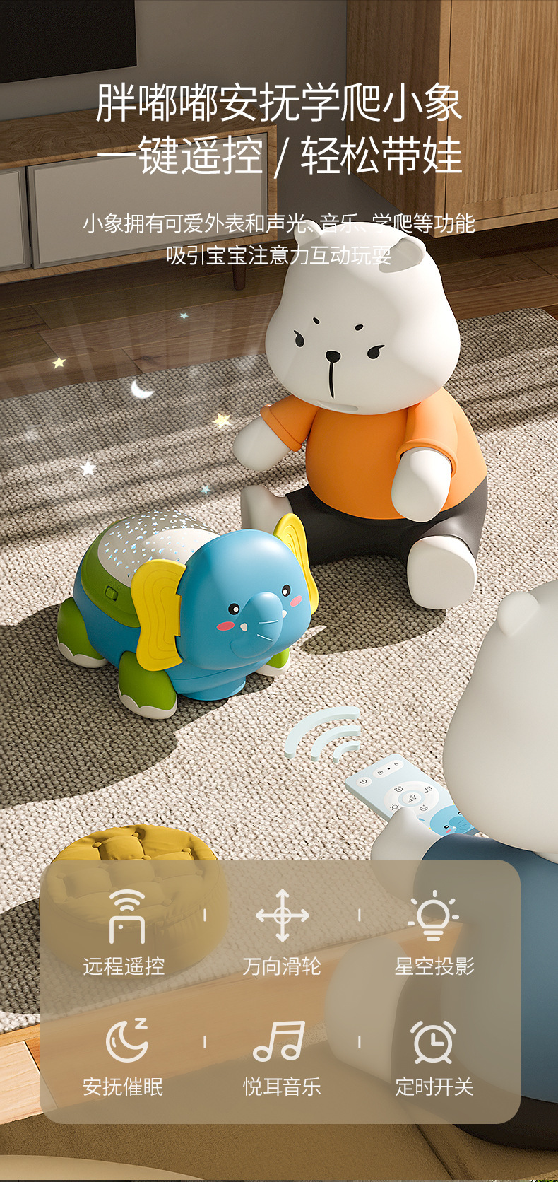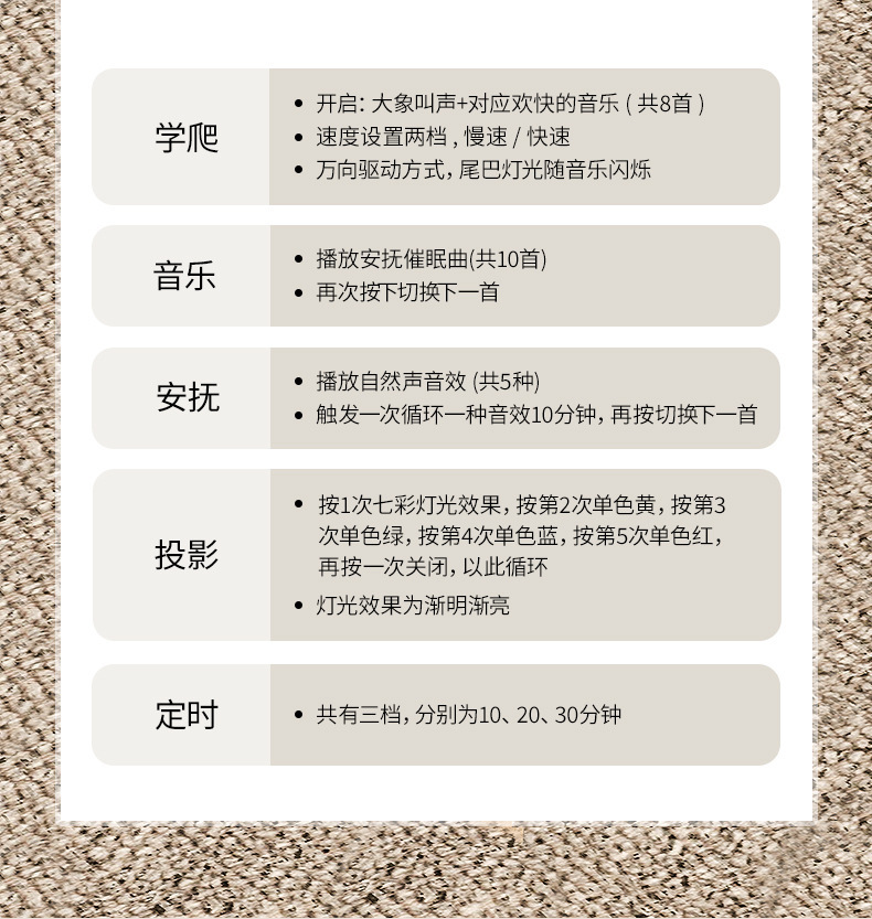 【商品功能】学爬 声光投影 音乐安抚