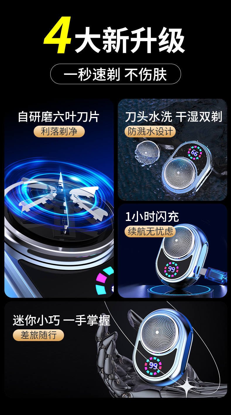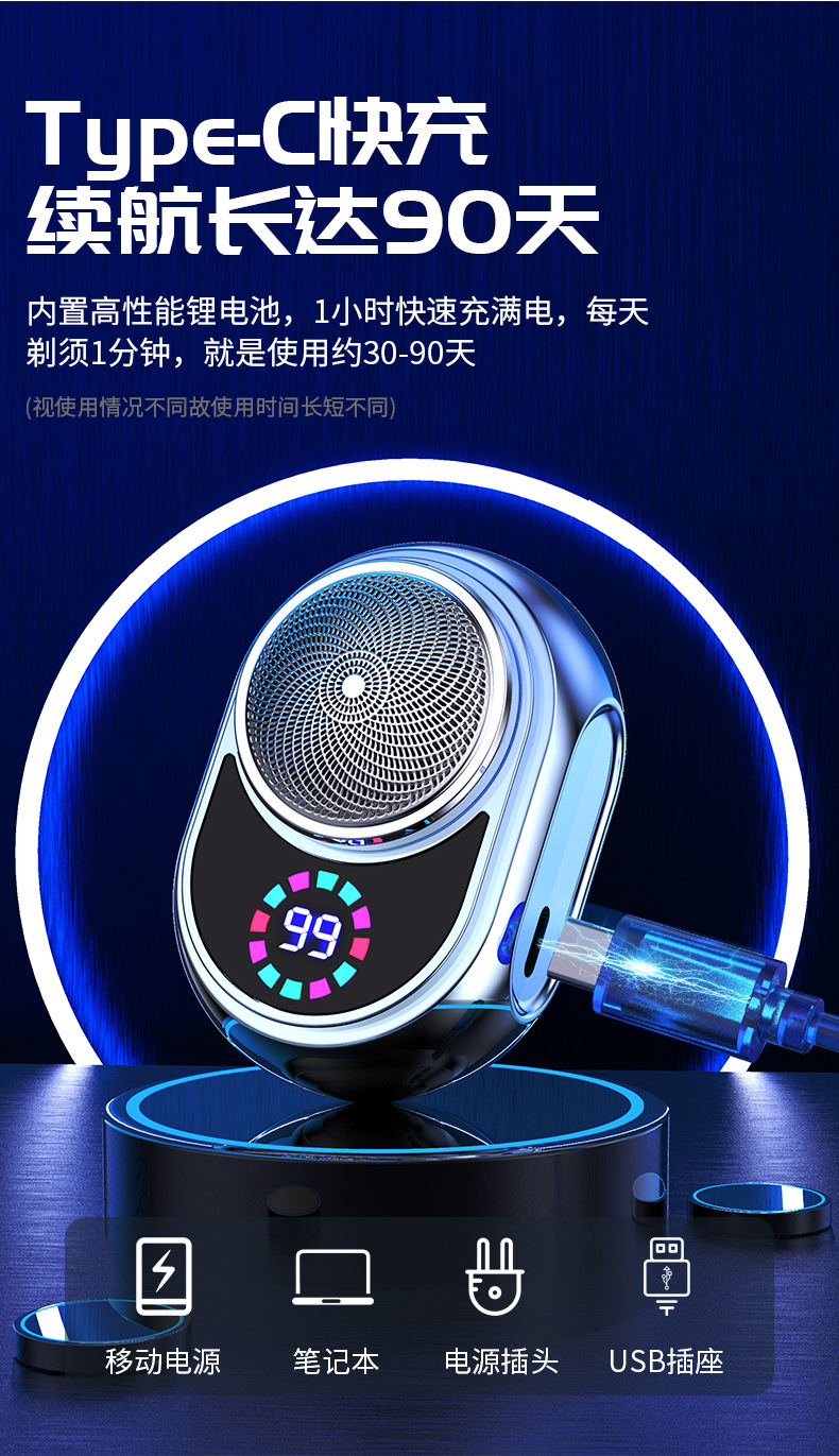 전기면도기 남성용 면도기 휴대용 여행용 세척 가능 디지털 디스플레이 면도기 전신 회전식 3날 면도기스토어 가기