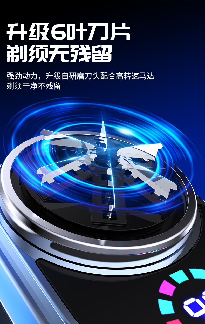 전기면도기 남성용 면도기 휴대용 여행용 세척 가능 디지털 디스플레이 면도기 전신 회전식 3날 면도기