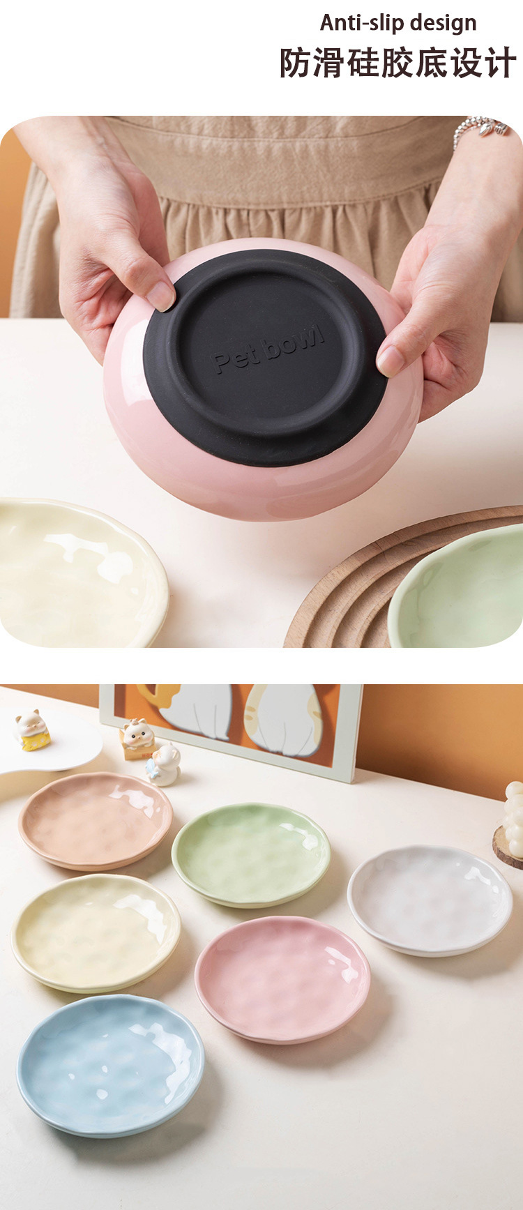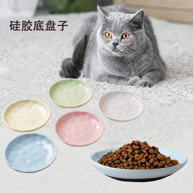 국경 간 애완 동물 그릇 간식 접시 고양이 음식 접시 실리콘베이스 미끄럼 방지 세라믹 고양이 그릇 고양이 그릇은 노크하기 쉽지 않습니다.