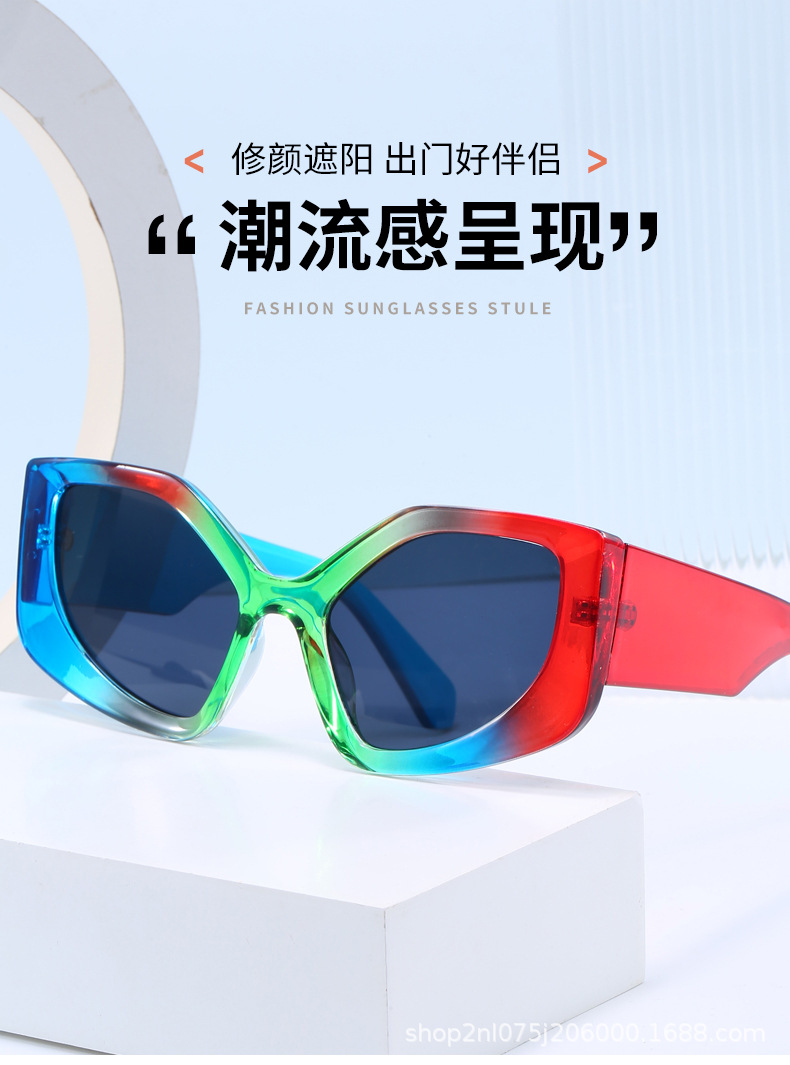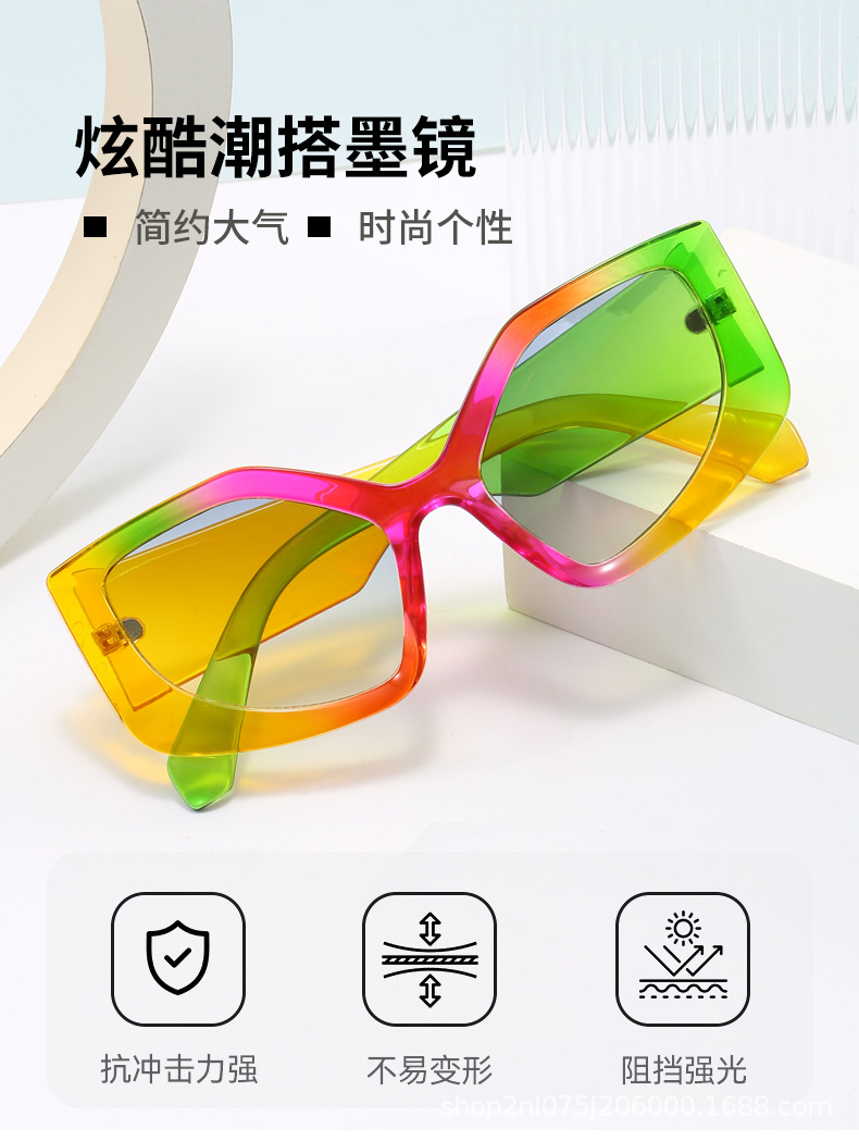 2024년 여름 신상 유럽 및 미국 스타일 대형 프레임 캣아이 선글라스, 컬러 그라데이션 스트리트 스타일 빅페이스 선글라스스토어 가기
