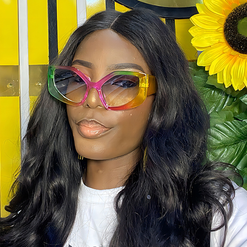 2024년 여름 신상 유럽 및 미국 스타일 대형 프레임 캣아이 선글라스, 컬러 그라데이션 스트리트 스타일 빅페이스 선글라스