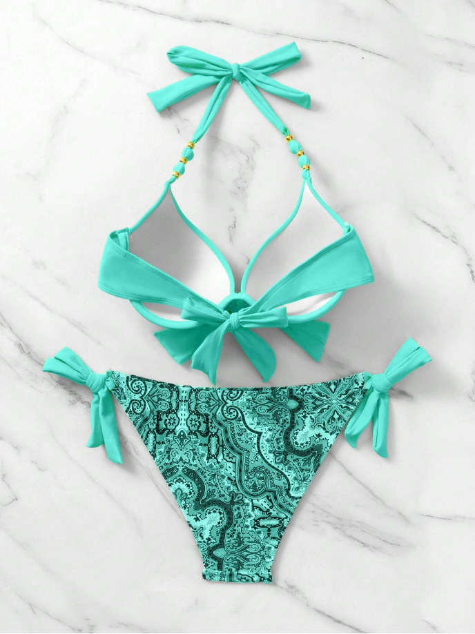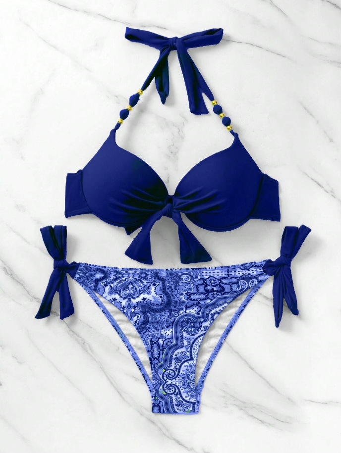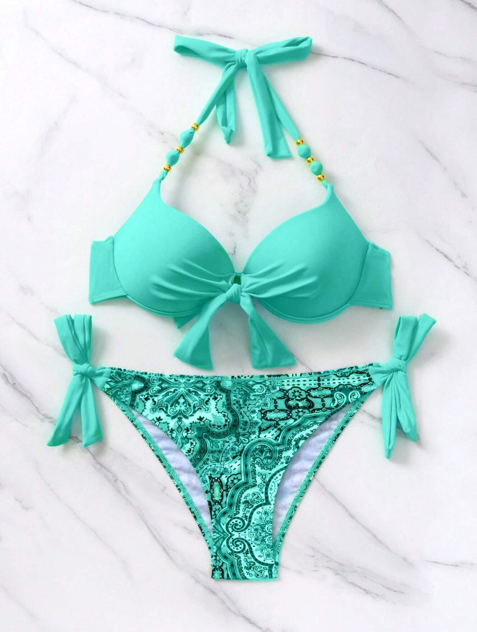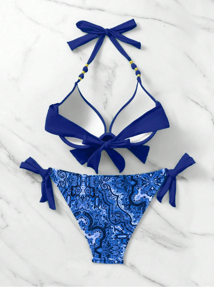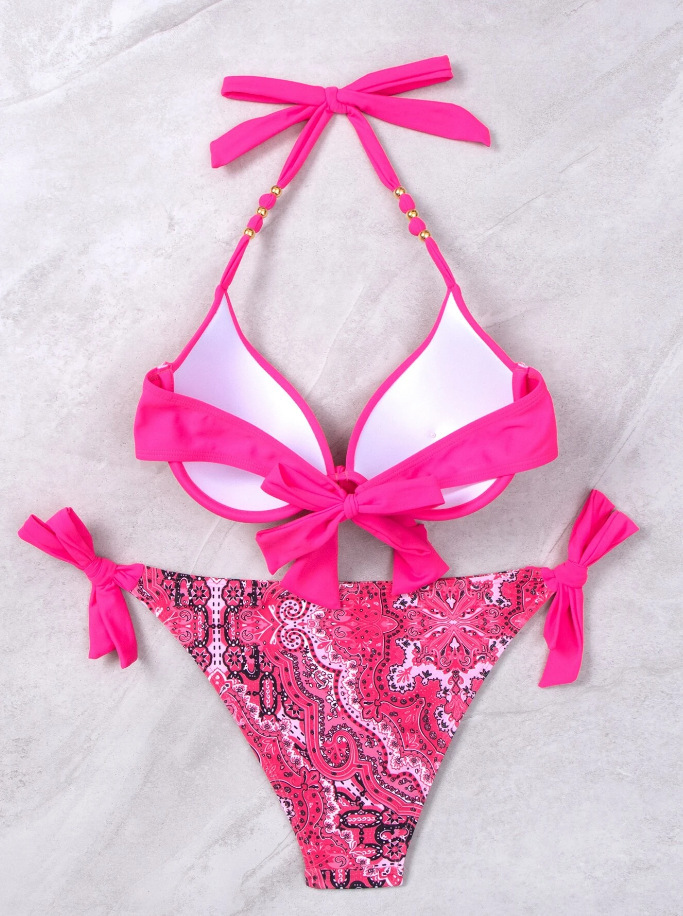 2024 새로운 도착 인쇄 비키니 유럽과 미국의 스트랩 멀티 컬러 분할 세트 수영복 여성용 비키니 수영복