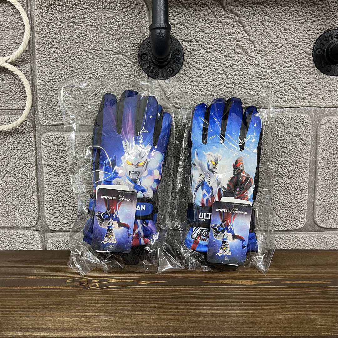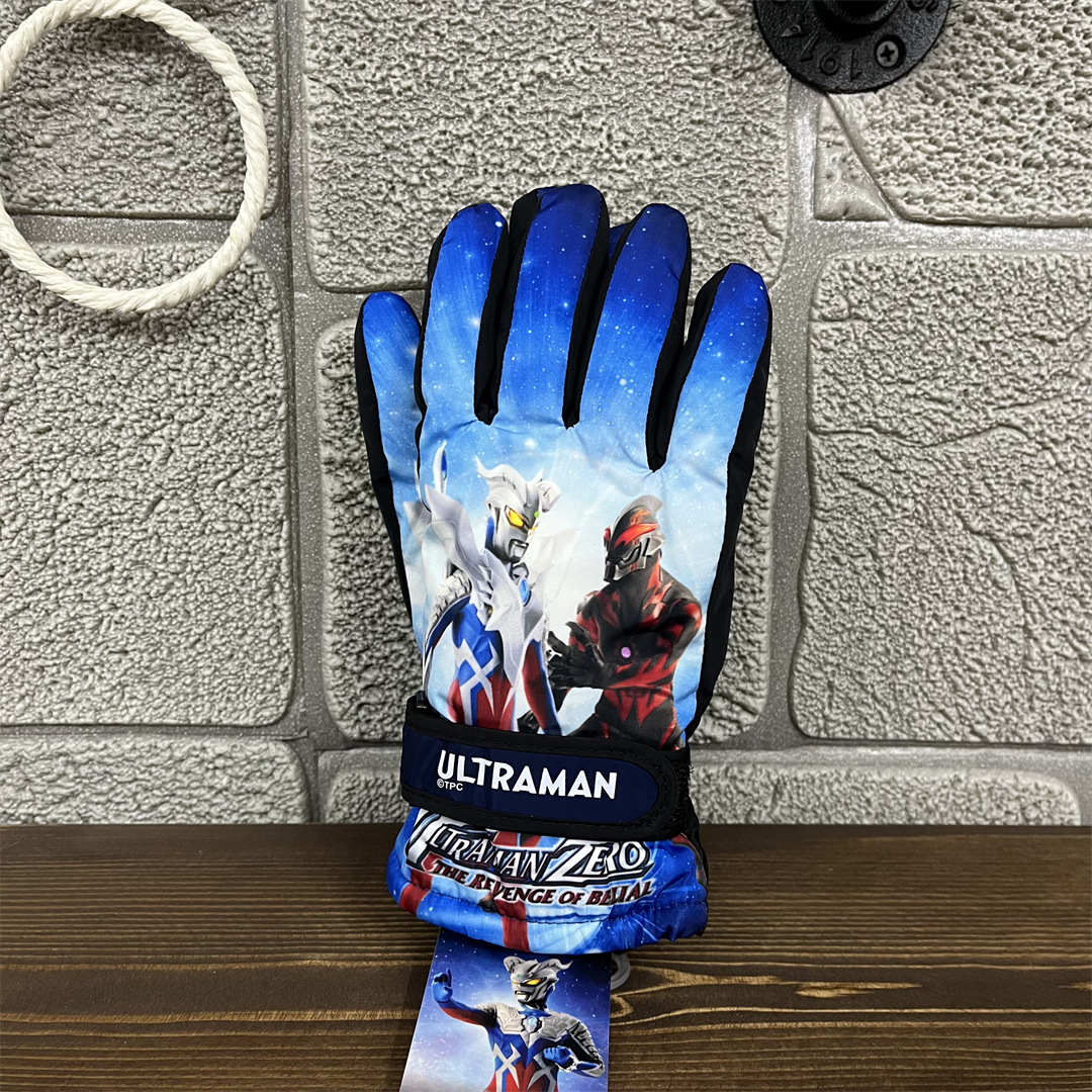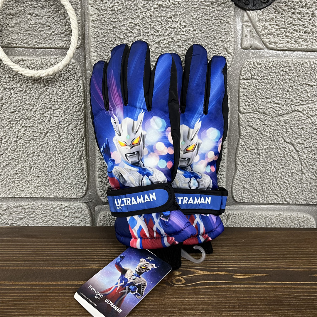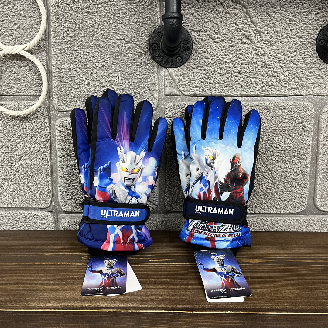 정품 울트라 맨 겨울 어린이 소년과 소녀 아기 따뜻한 야외 스포츠 다섯 손가락 스키 장갑 UMAF9090D