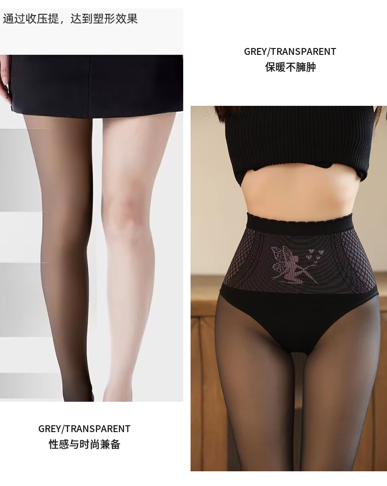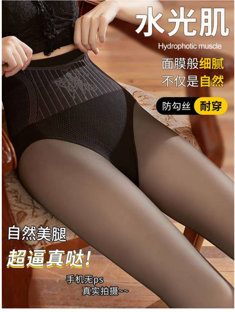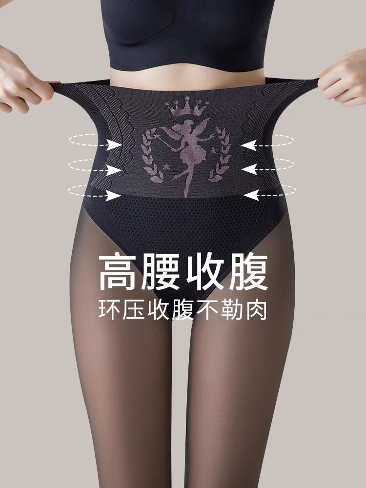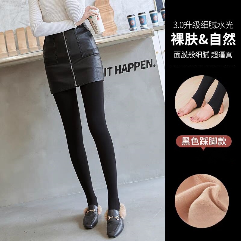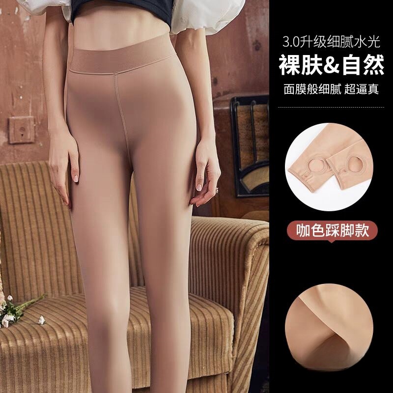 기모 두꺼운 물빛 양말 여성용 가을과 겨울 스타킹 가벼운 다리 검은 물 빛 근육 하단 양말 인공물 높은 허리 검은 색