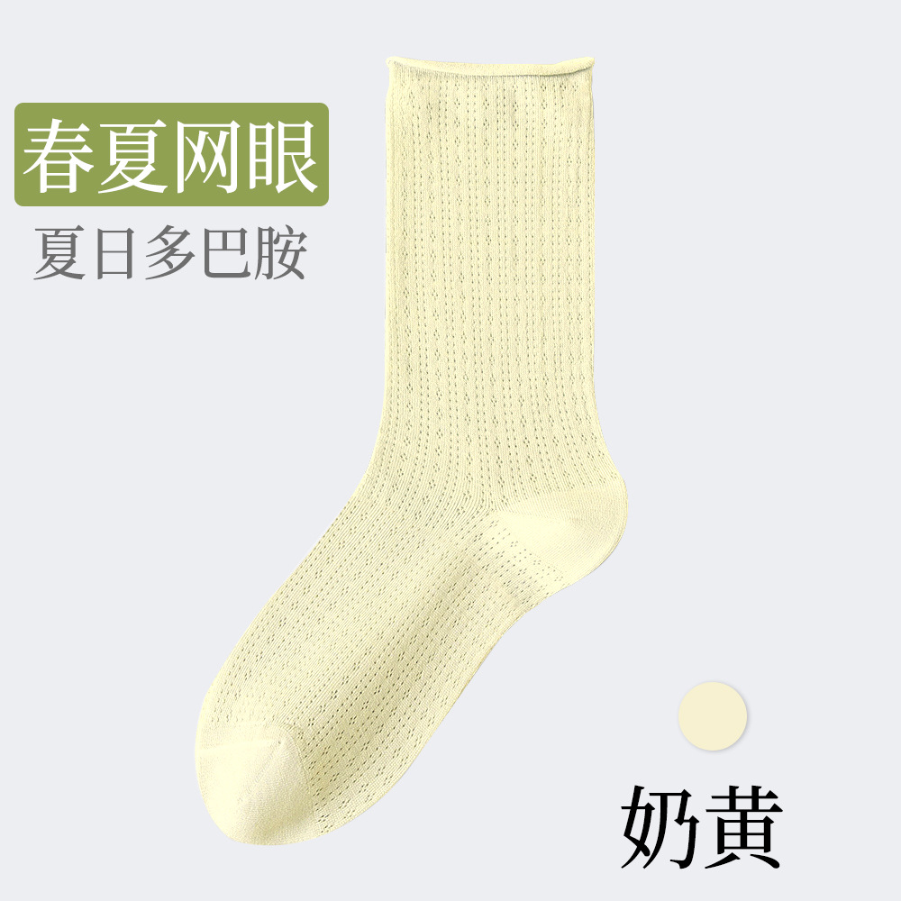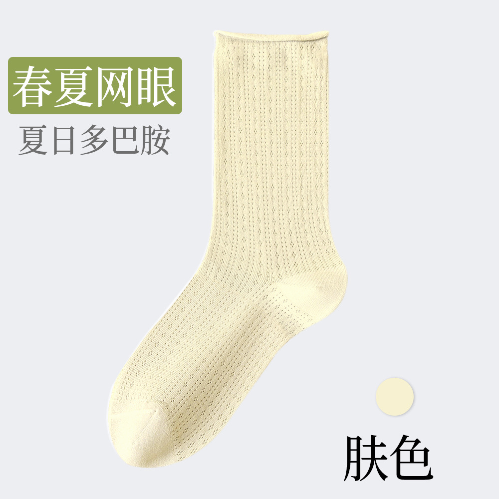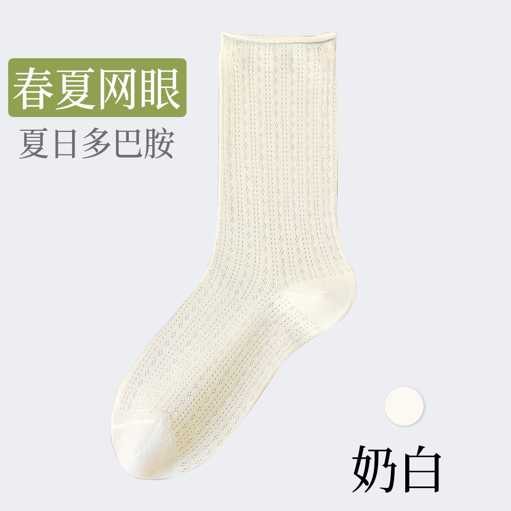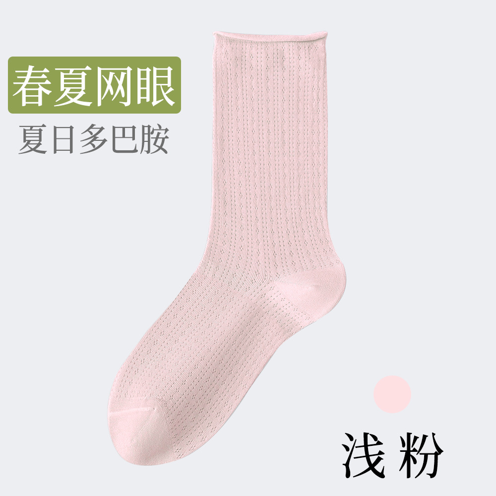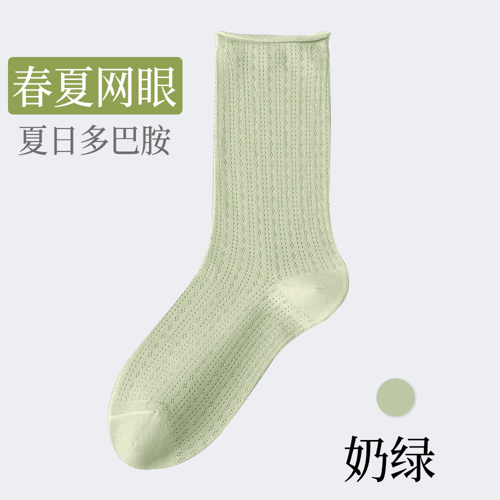 여성용 얇은 면 양말, 메쉬 레이스, 속이 비치는 통기성 여름용 단색 중목 양말, 인스타 감성, 항균, 다용도