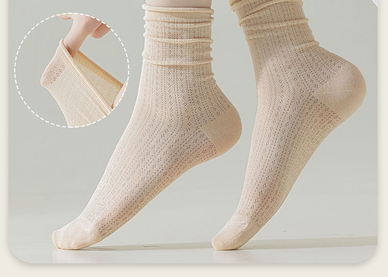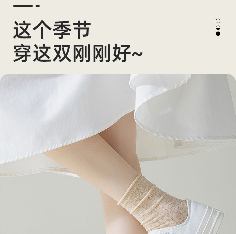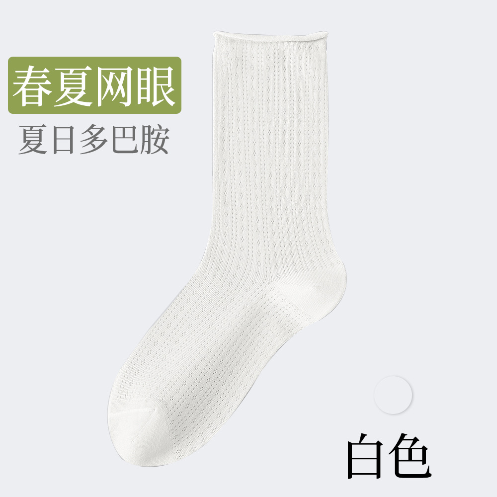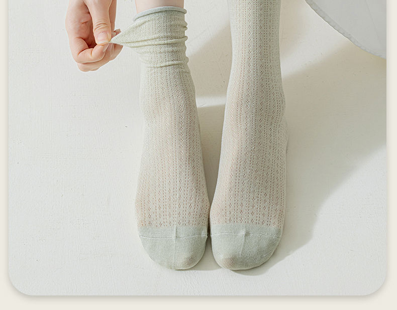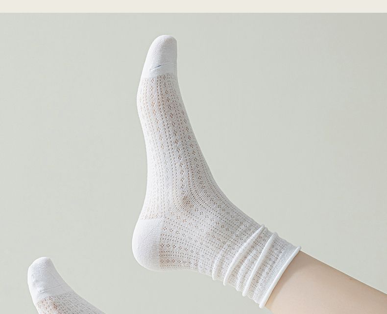 여성용 얇은 면 양말, 메쉬 레이스, 속이 비치는 통기성 여름용 단색 중목 양말, 인스타 감성, 항균, 다용도스토어 가기