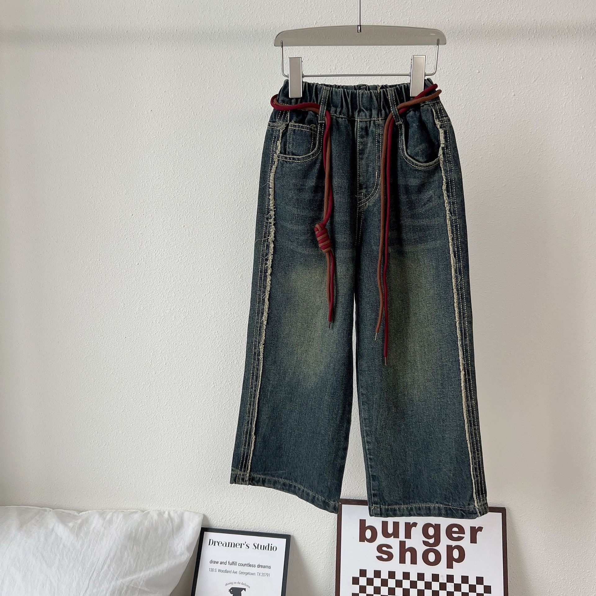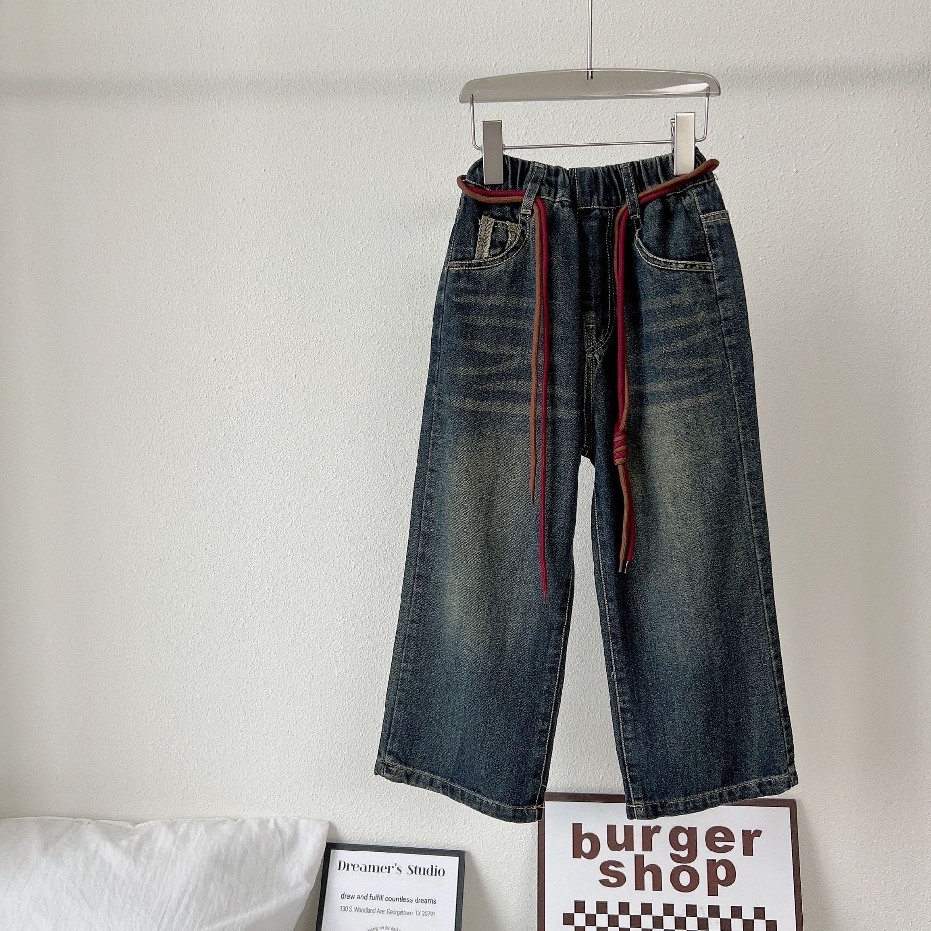 아동 바지 2026 남아 여아 봄 가을 신상 3322 허리 라벨 디자인 중대형 아동용 한국 스타일 심플 청바지스토어 가기