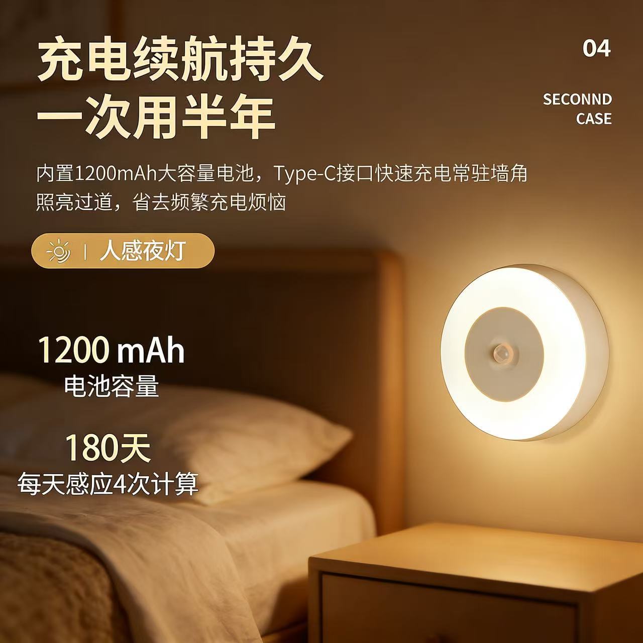 미디어 스마트 야간등 인체감지 에너지 절약 침실 계단 충전식 화장실 조광 가능 충전식