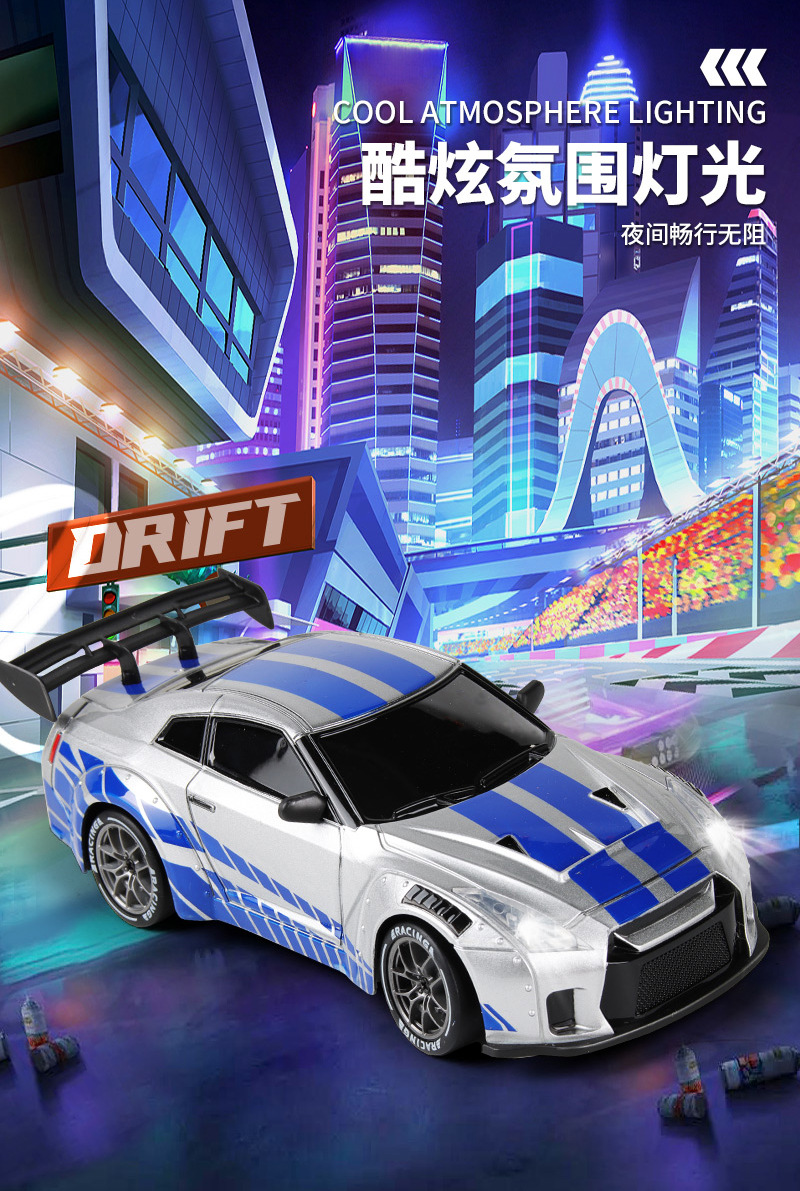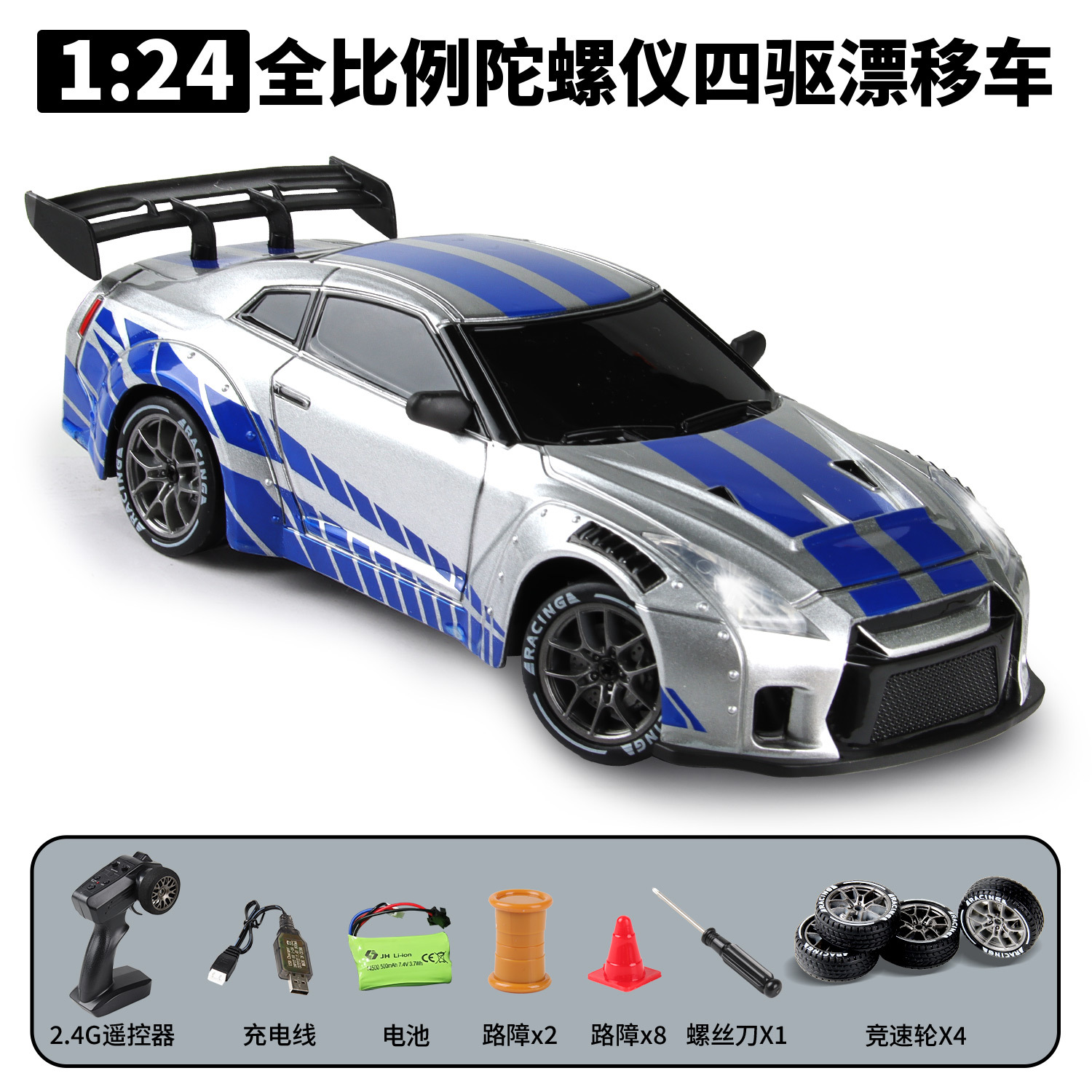 • 실물 크기 원격 제어 자동차 GTR 실버 블루 [산악 타이어 4 + 로드블록 10]