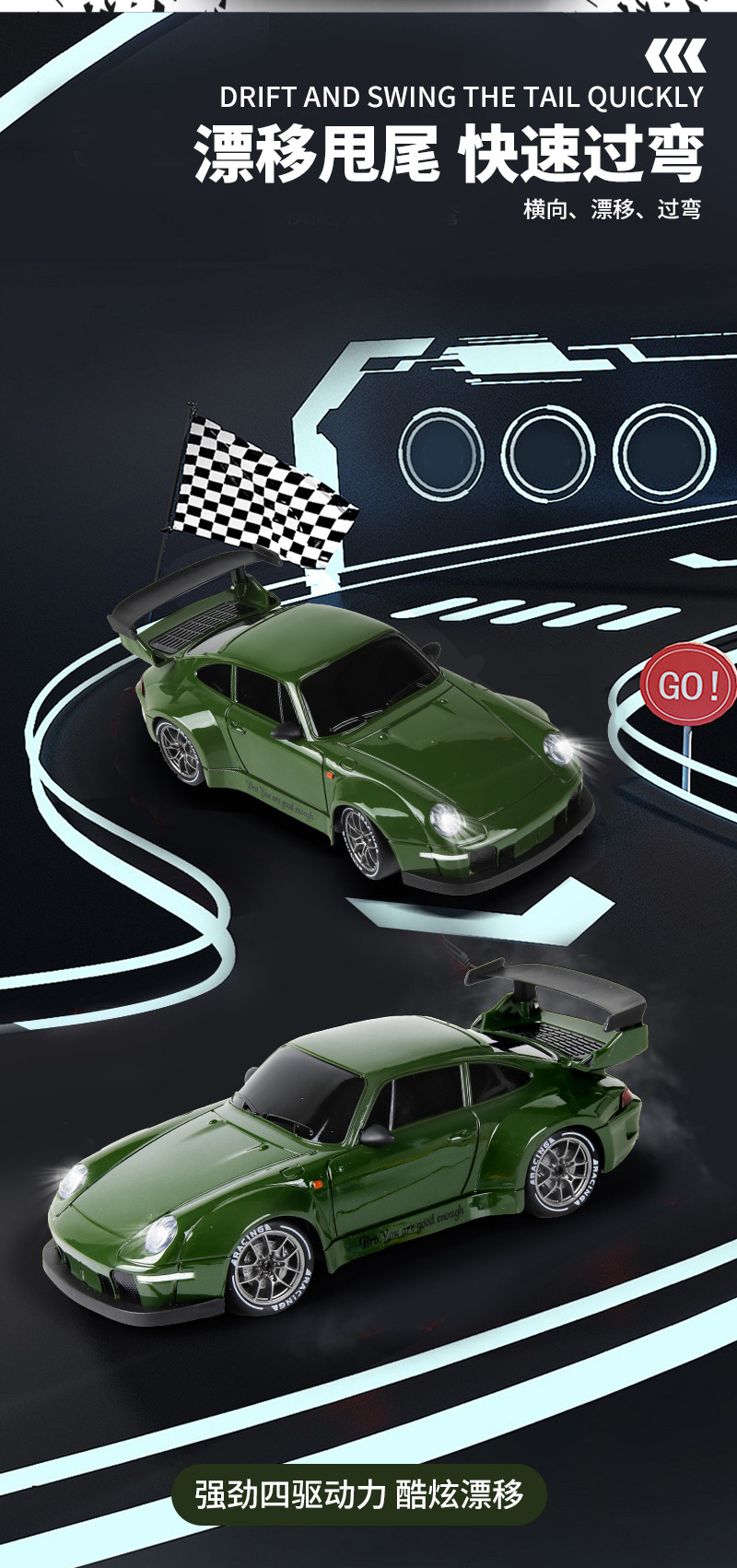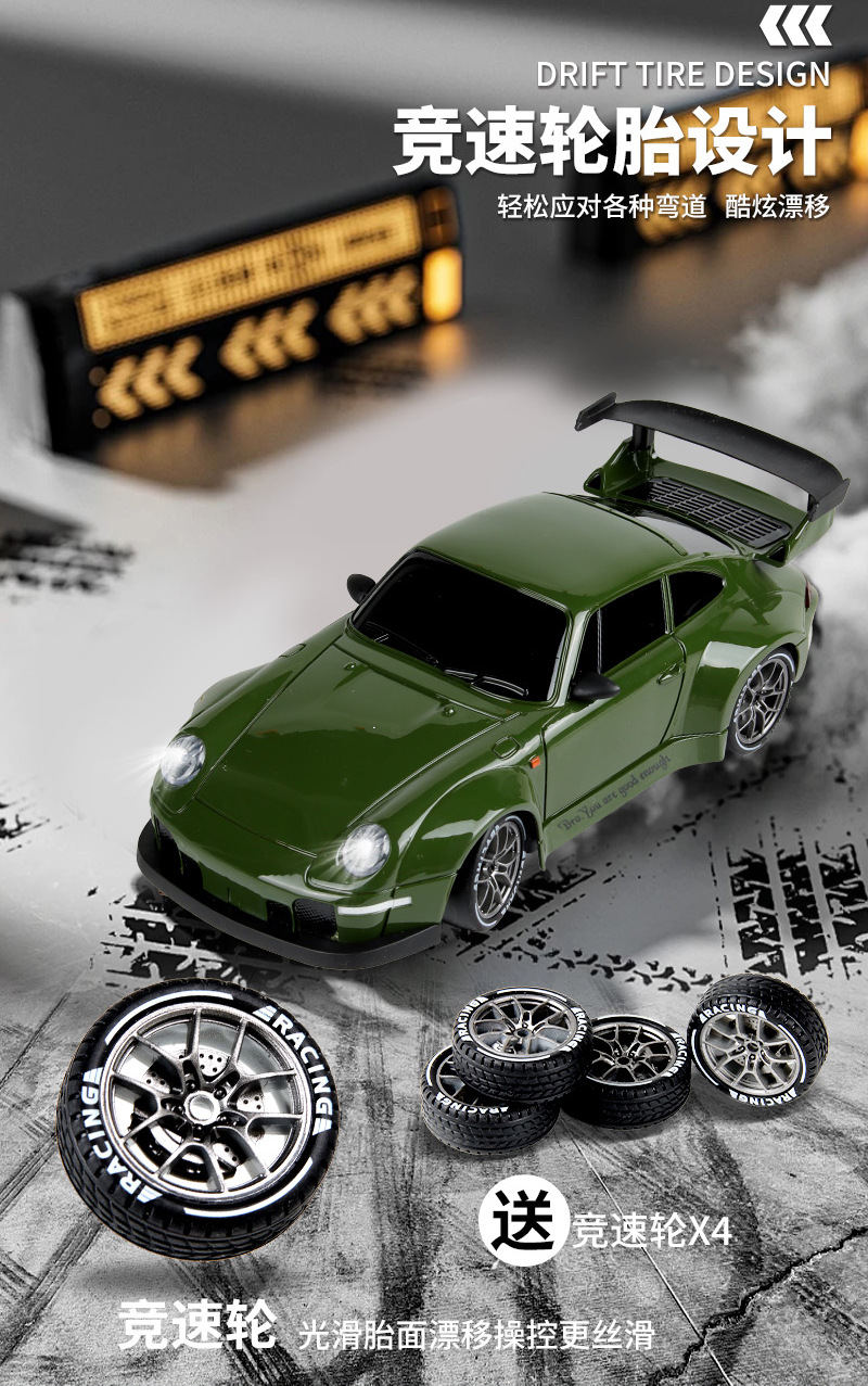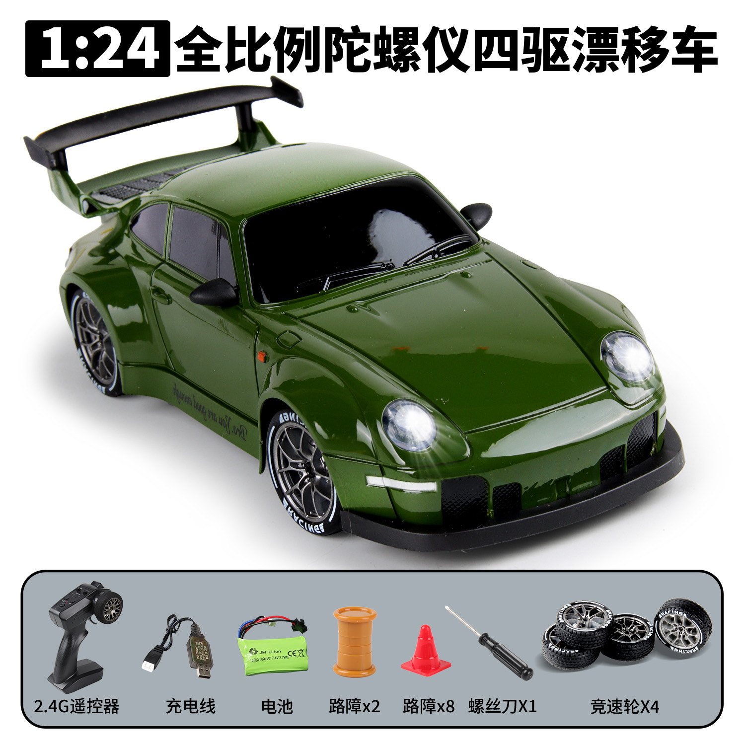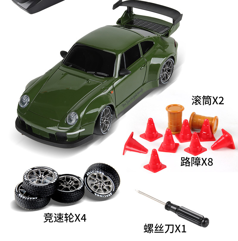 • 실물 크기 원격 제어 자동차 993 진한 녹색 [산악 타이어 4 + 로드블록 10]