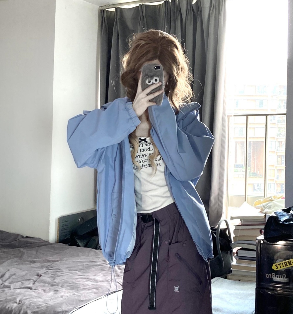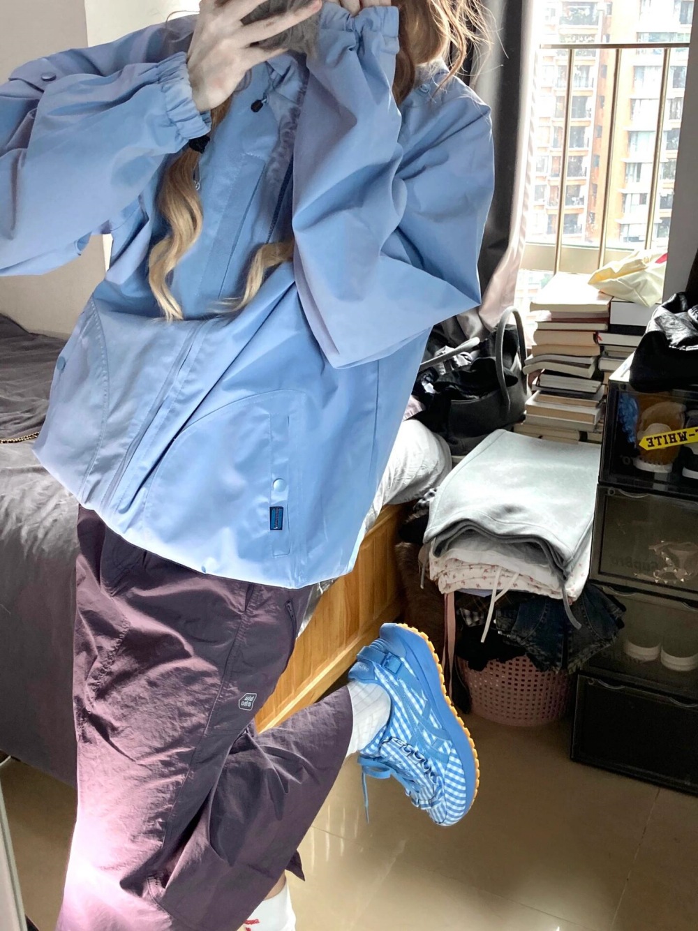 이른 가을 블루 재킷 코트 여성의 봄과 가을 느슨한 스포츠 야외 방풍 도구 야구 세트 재킷스토어 가기