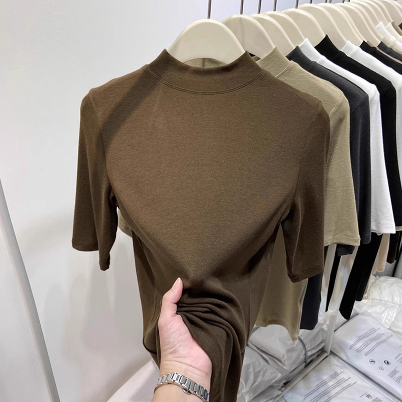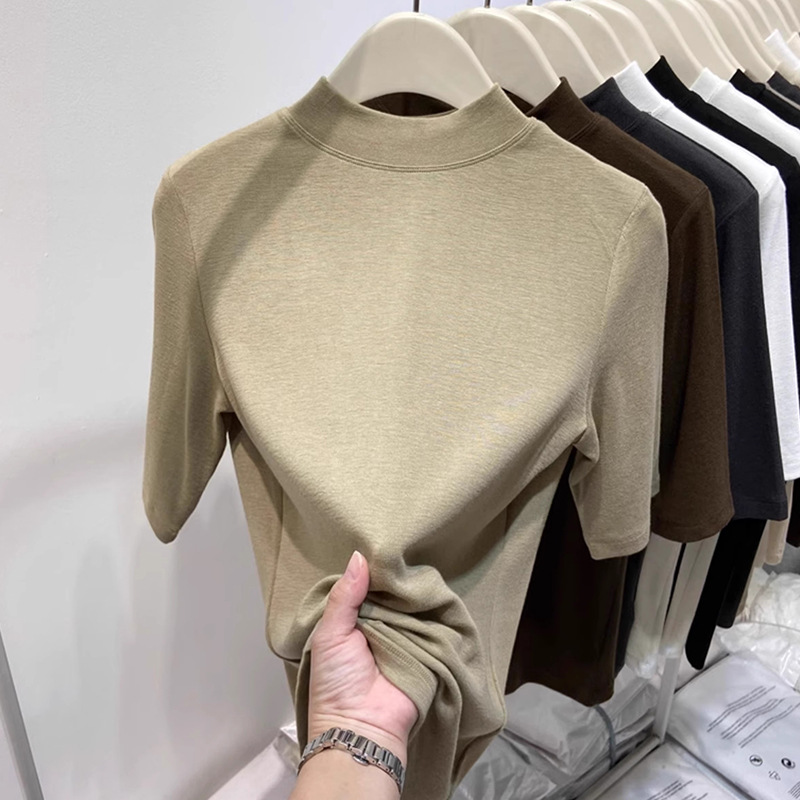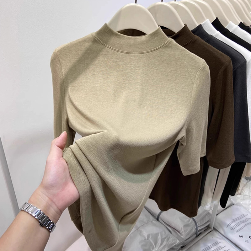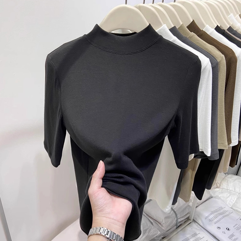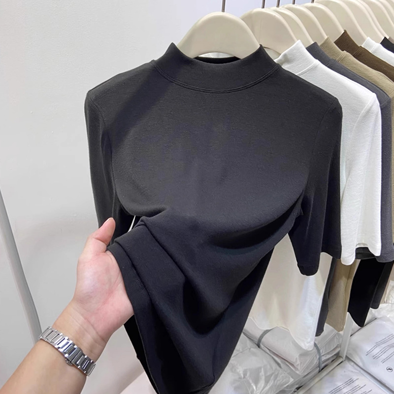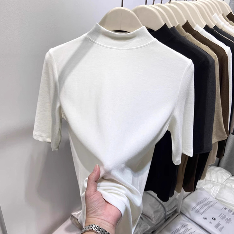여성용 양털 반높이 칼라 스타일 '타이트베이스 셔츠 반소매 가을과 겨울 새 도착 플러스 사이즈 슬리브 화이트 탑스토어 가기