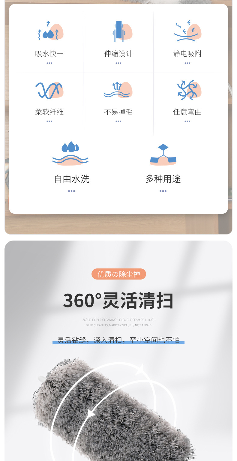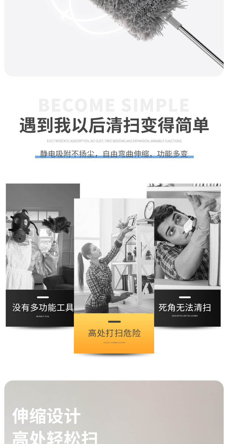 전자 상거래 폭발 깃털 먼지 먼지 청소 재 가정용 2.8 m 천장 긴 망원경 먼지 청소스토어 가기