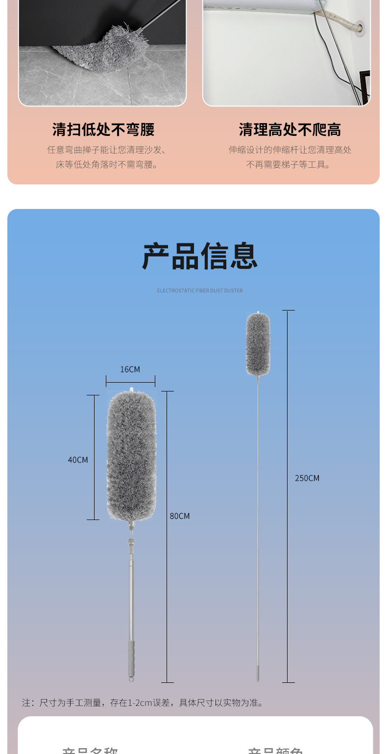 전자 상거래 폭발 깃털 먼지 먼지 청소 재 가정용 2.8 m 천장 긴 망원경 먼지 청소