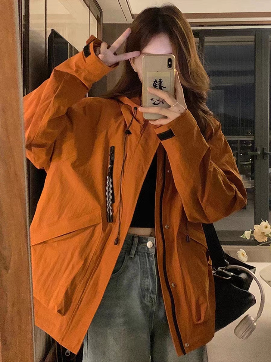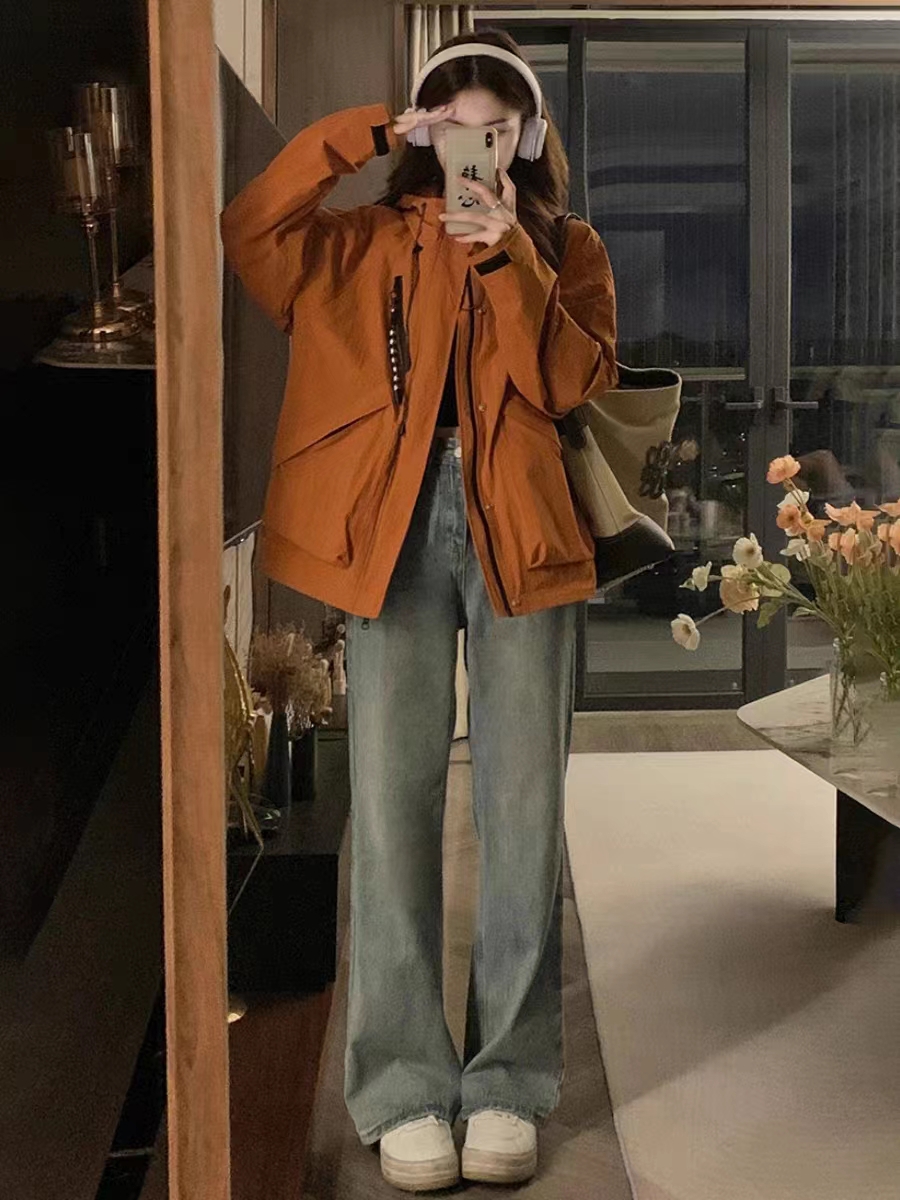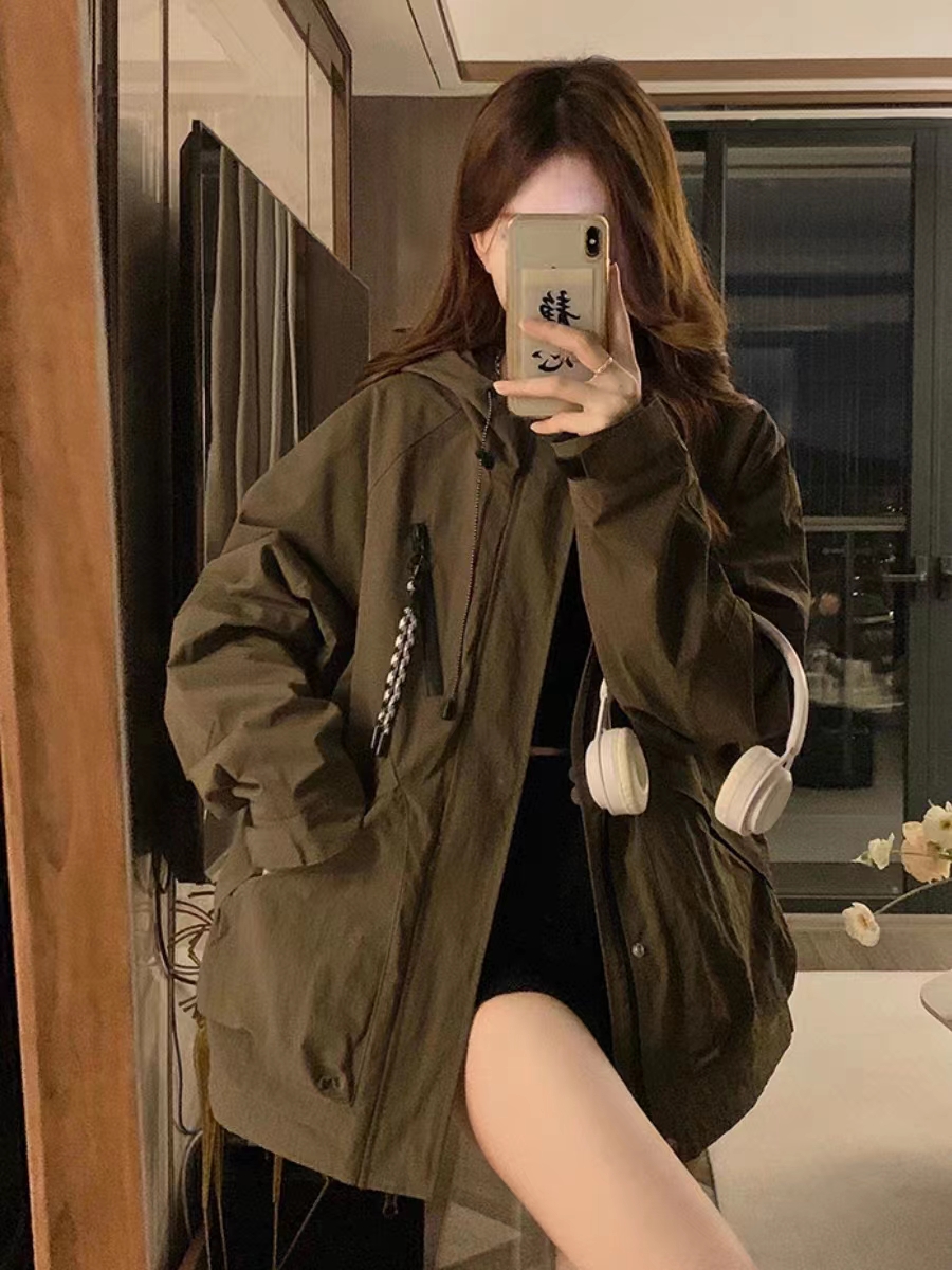 3 대 1 미국식 충전 옷 여성의 봄과 가을 느슨한 후드 작업 재킷 야외 여행 하이킹 등반 세트 재킷