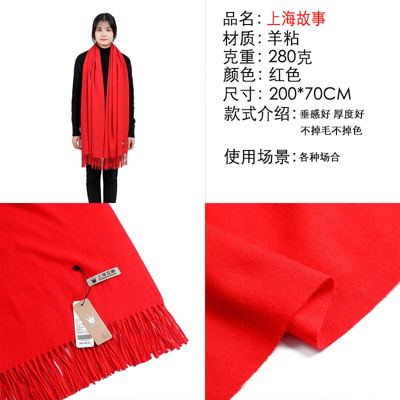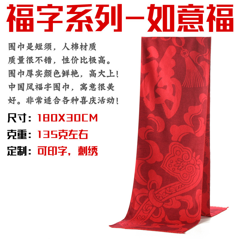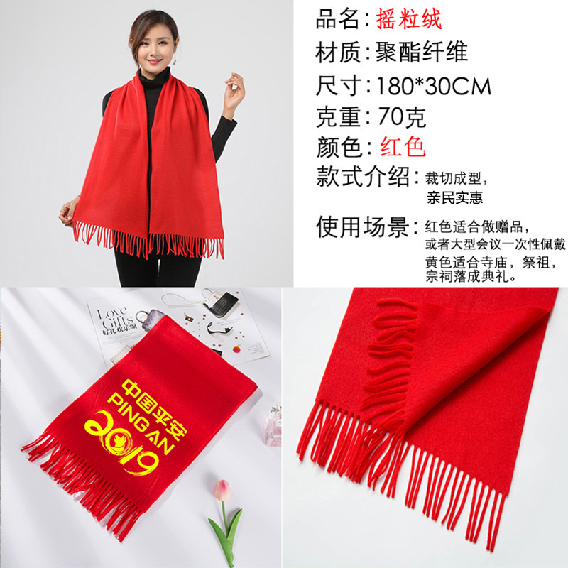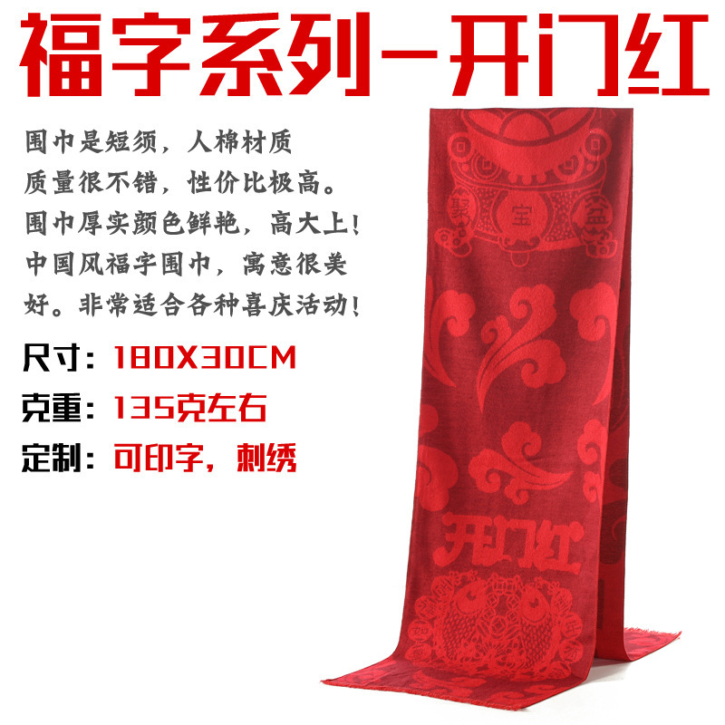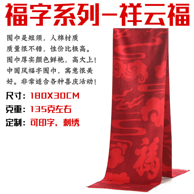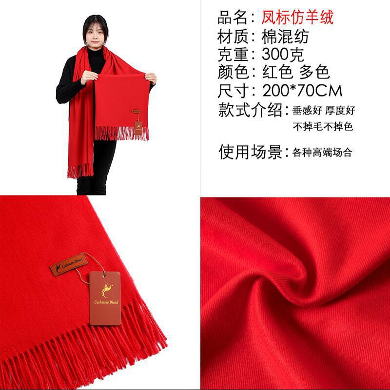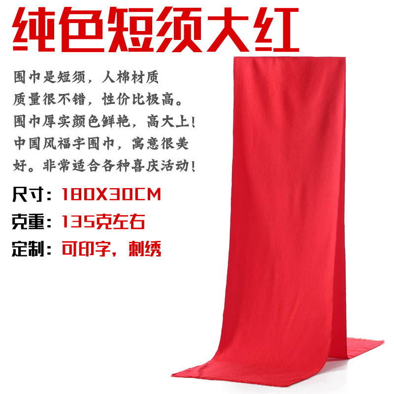 중국풍 스카프, 밝은 빨간색, 개업식, 민족풍 행사, 모조 캐시미어 스카프, 자수 및 프린팅, 빨간색 스카프, 단색스토어 가기