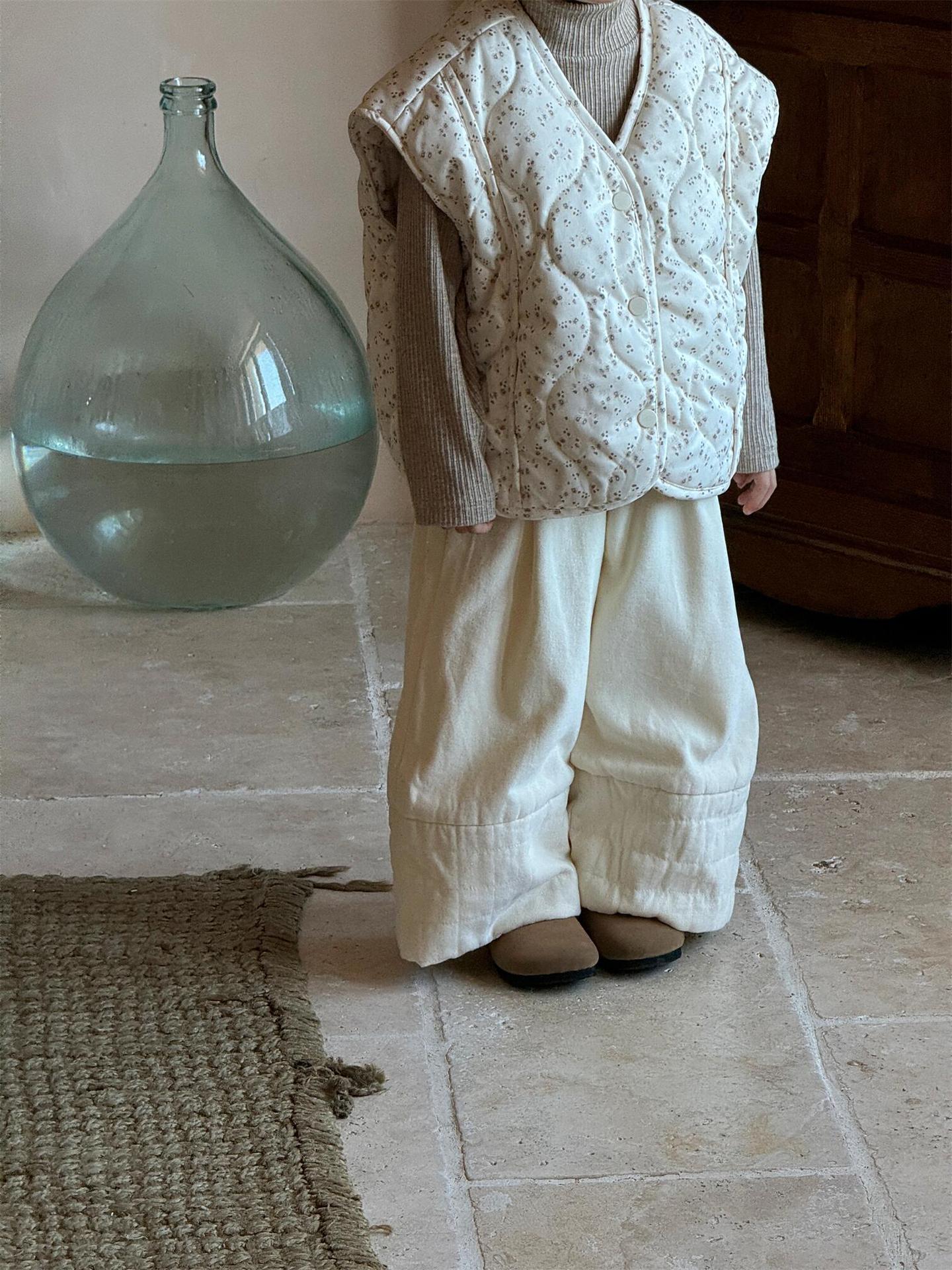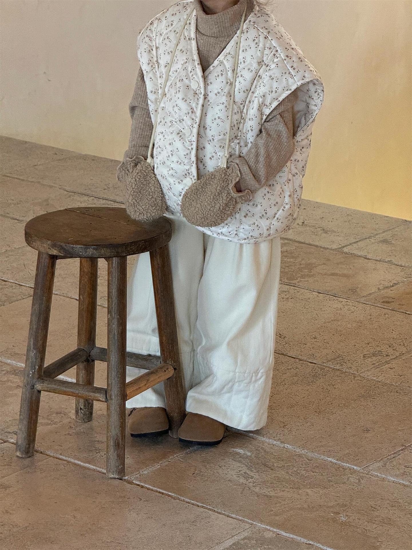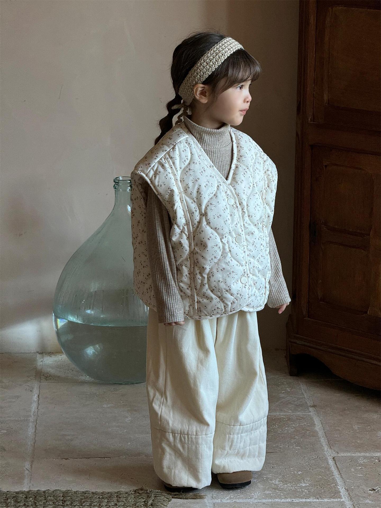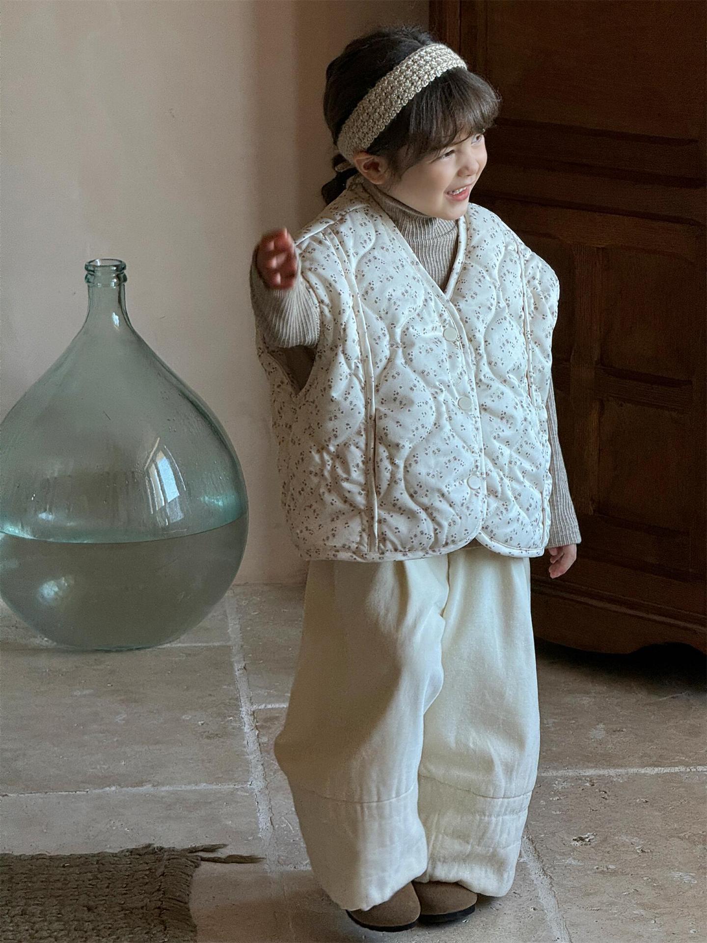 탑 에그 한국 아동복 2024 겨울 새 소녀상 조끼 꽃면 민소매 싱글 가슴 게으른 자켓