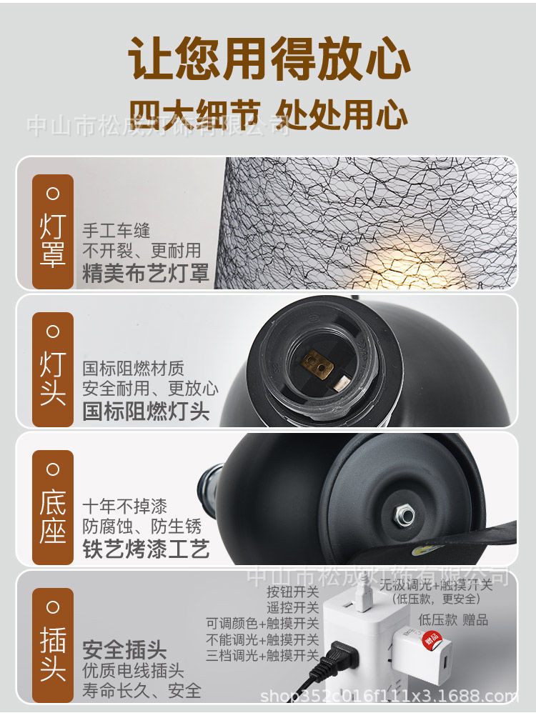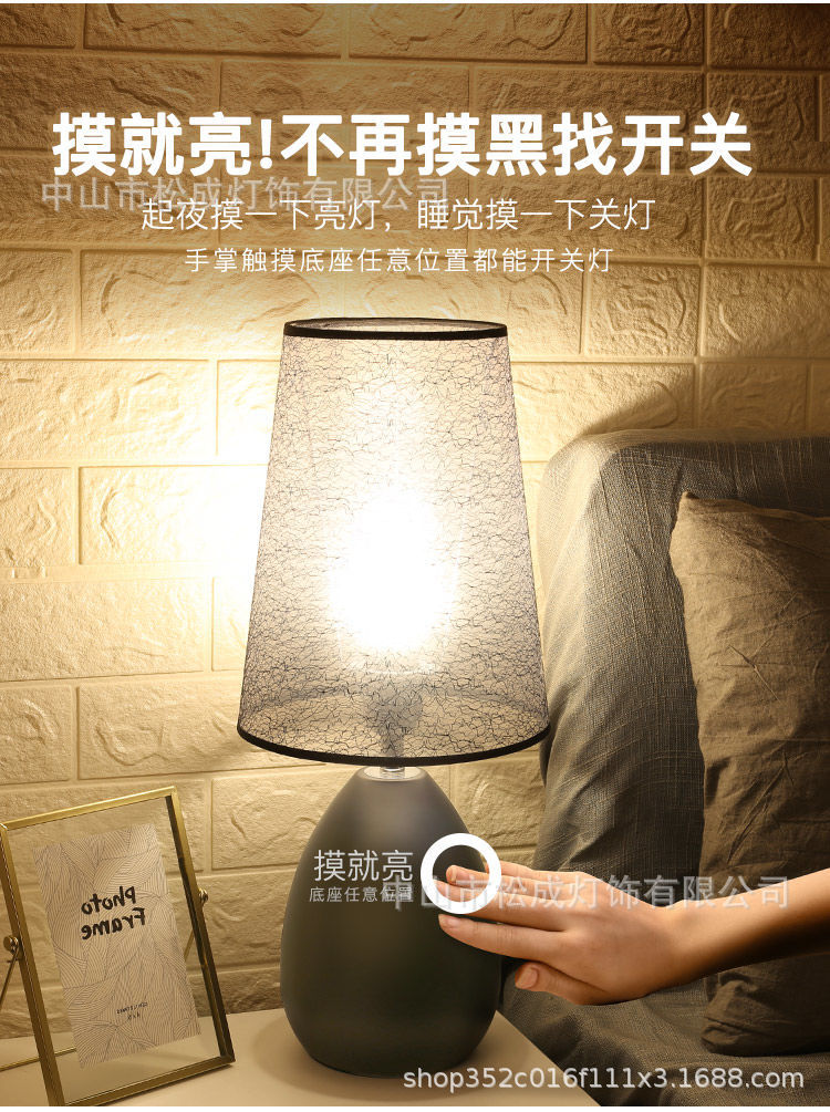크로스보더 북유럽 스타일 테이블 램프 모던 심플 로맨틱 아메리칸 터치 센서 눈 보호 호텔 장식 침대 옆 램프 LED스토어 가기