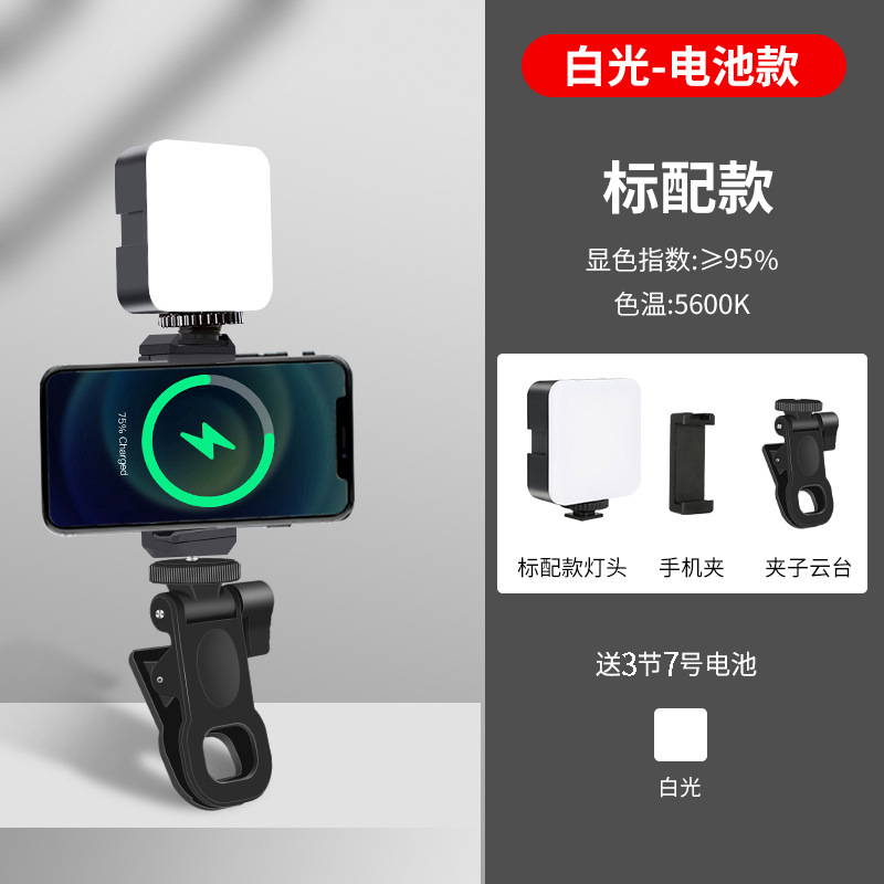 • 백색광 채우기 조명 + 핫슈 클립 + 삼각대 + 포켓 라이트 클립