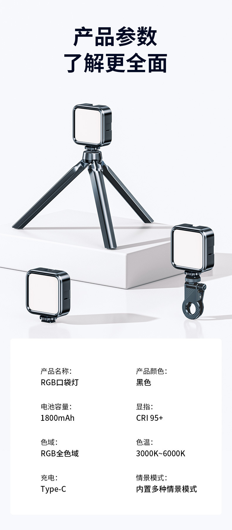 • 백색광 채우기 조명 + 삼각대 + 포켓 라이트 클립