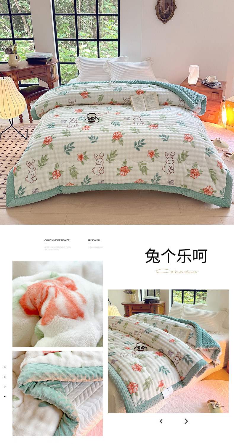 살아있는 토끼 토끼 벨벳 3 층 면화 이불 양면 벨벳 패딩 따뜻한 코어 우유 벨벳 담요 도매스토어 가기