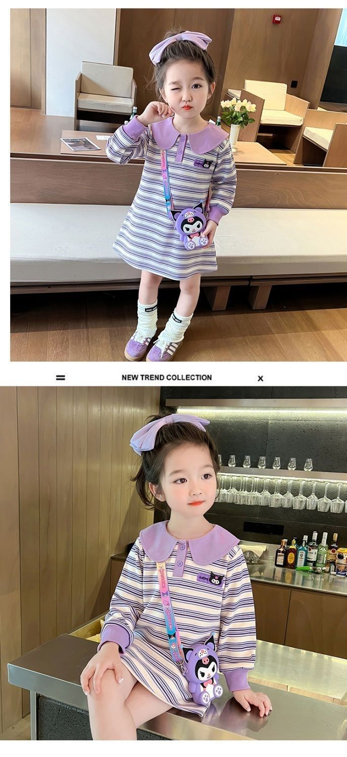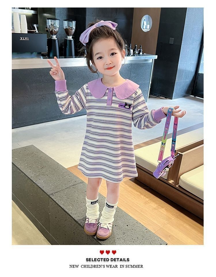 소녀의 가을 긴 소매 줄무늬 원피스 아기 소녀의 한국 스타일 패션 스웨트 스커트 만화 Kloomi 공주 스커트스토어 가기