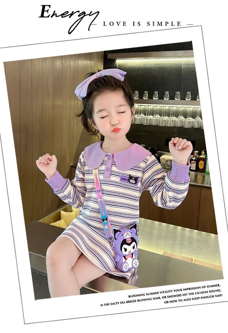 소녀의 가을 긴 소매 줄무늬 원피스 아기 소녀의 한국 스타일 패션 스웨트 스커트 만화 Kloomi 공주 스커트