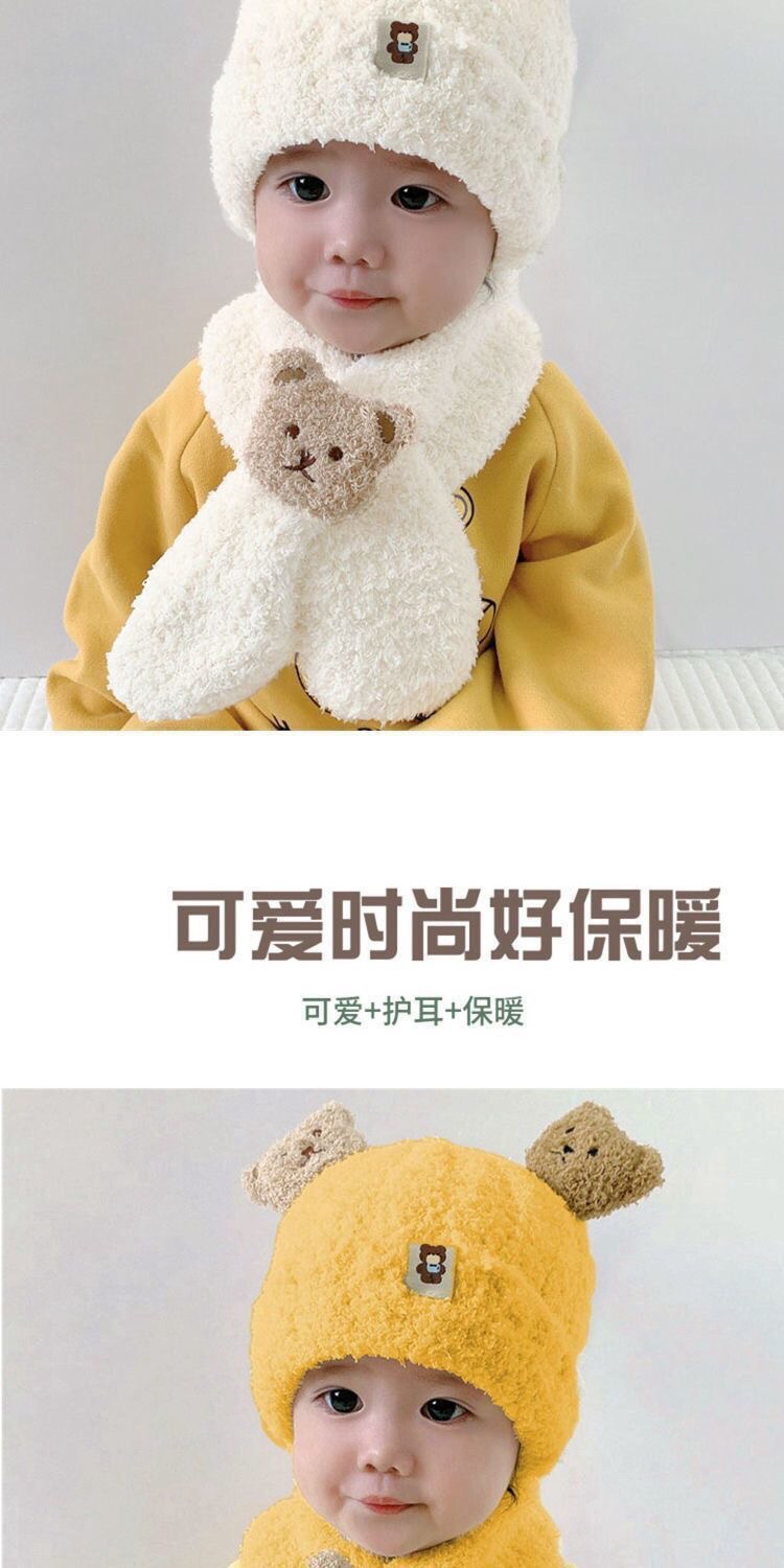 2024 가을, 겨울 유아 및 어린이를위한 슈퍼 귀여운 곰 스카프 세트 아기 모자 소년과 소녀 따뜻한 플러시 모자스토어 가기