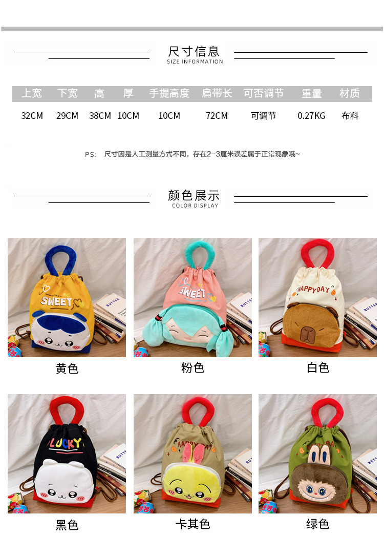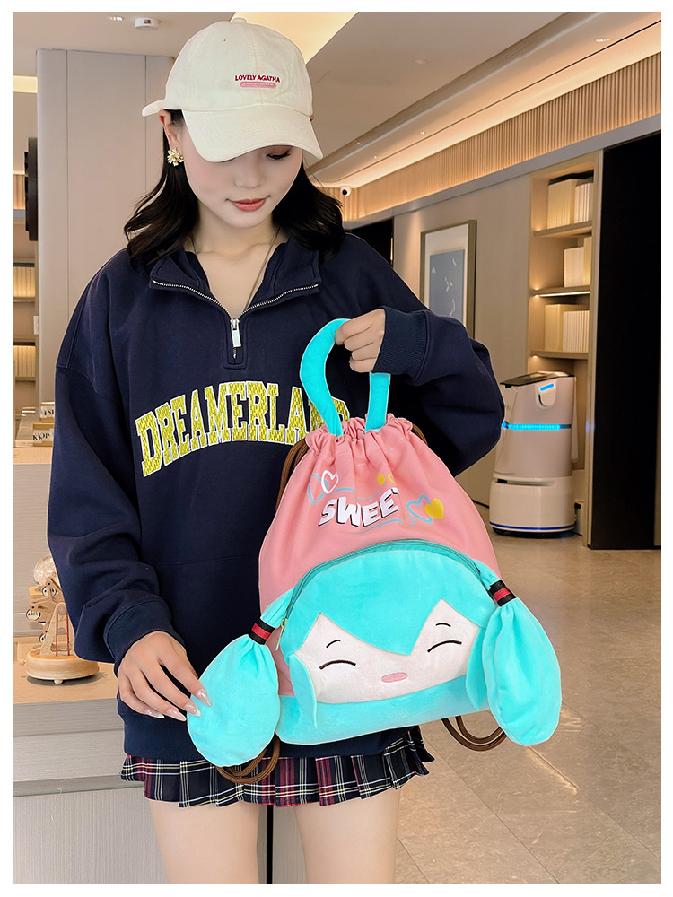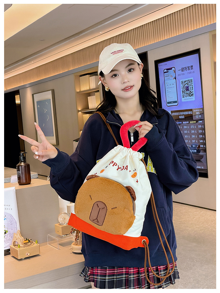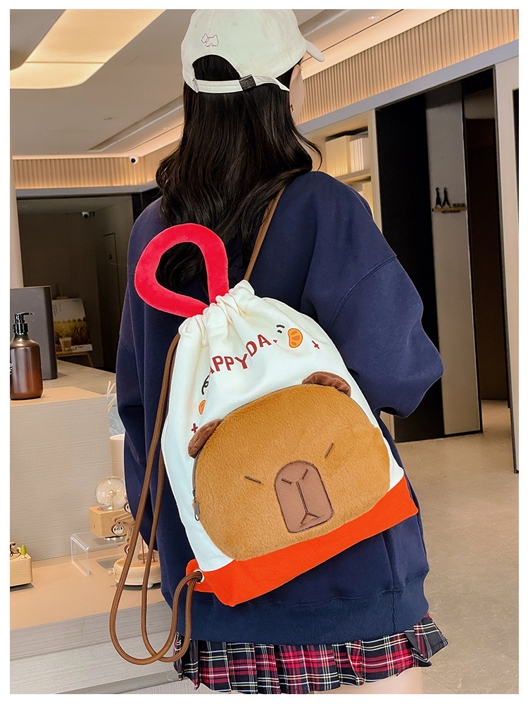 대용량 하츠네 플러시 배낭 카피바라 포켓 배낭 어린이 배낭 학생 만화 가방스토어 가기
