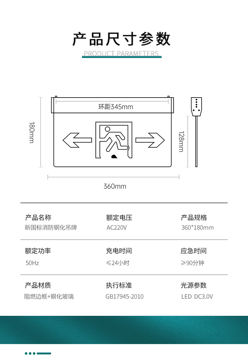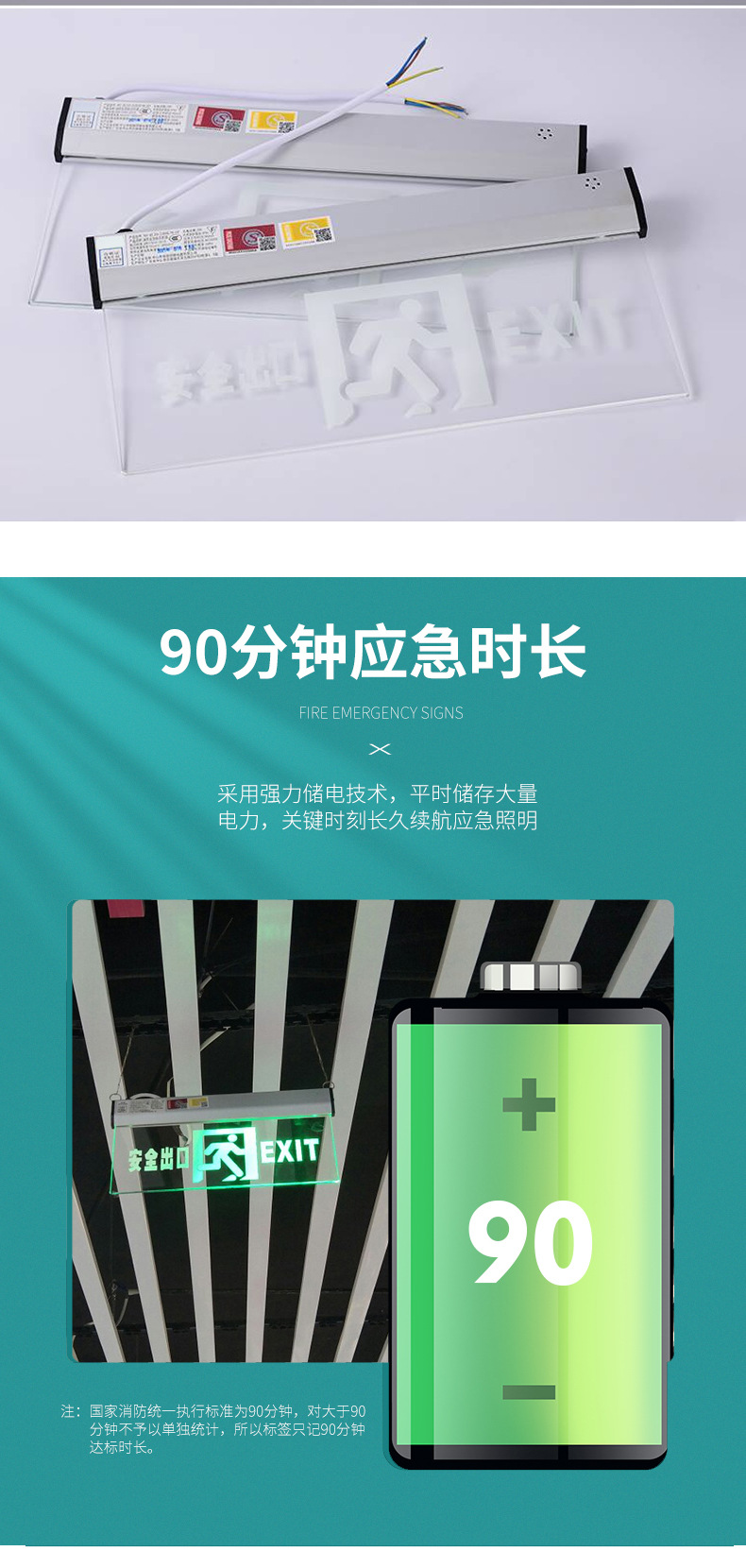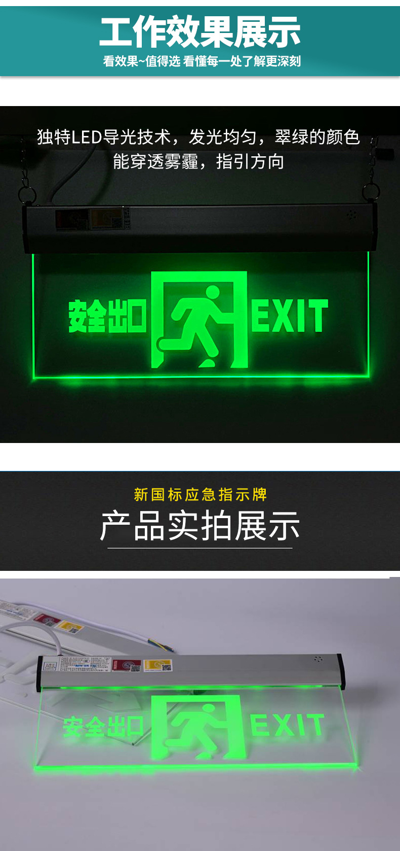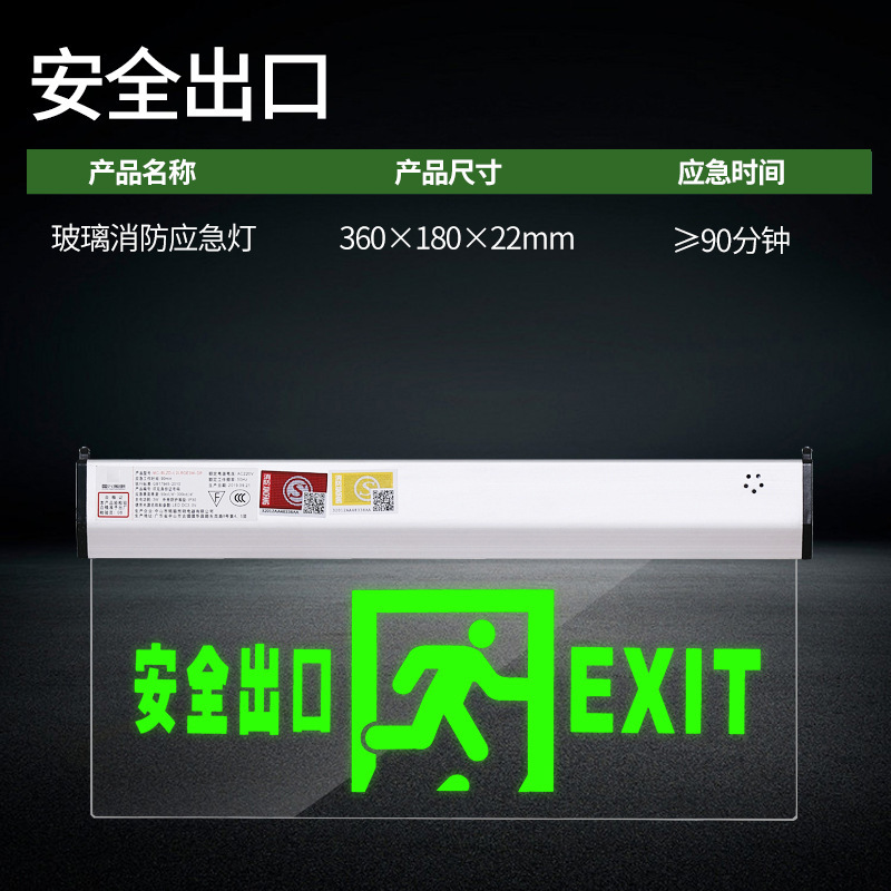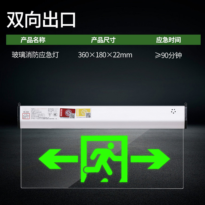 안전 출구 표지판 화재 비상등 매달려 대피등 투명 양면 유리 표지판