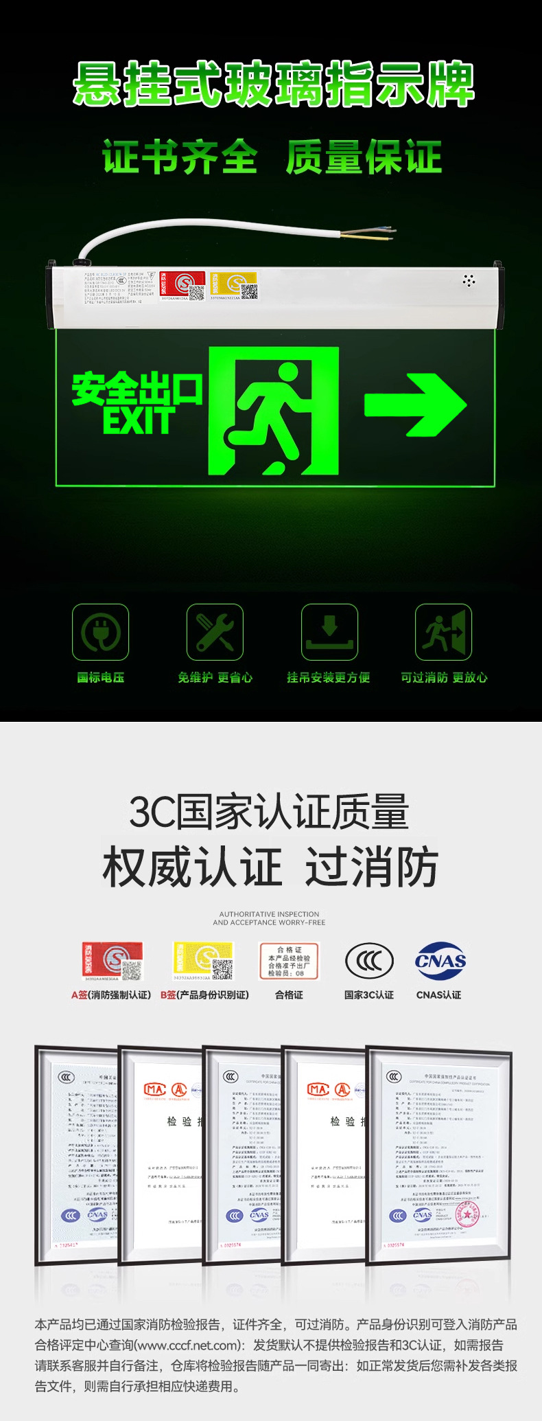 안전 출구 표지판 화재 비상등 매달려 대피등 투명 양면 유리 표지판스토어 가기