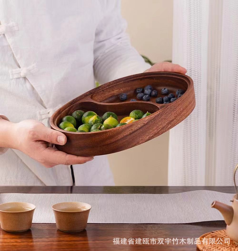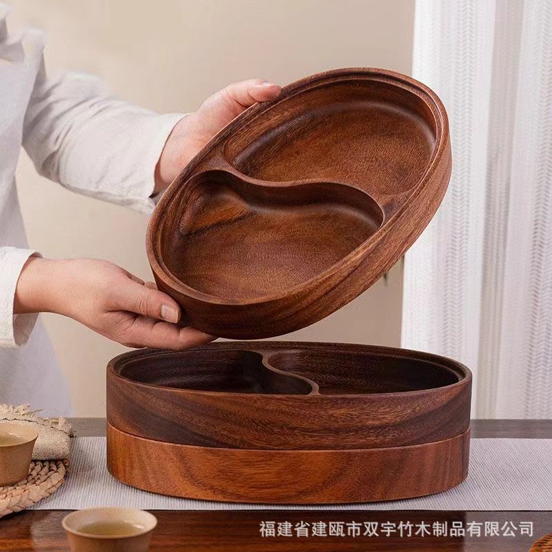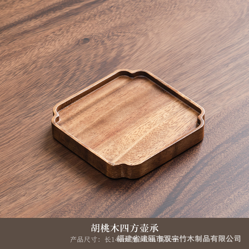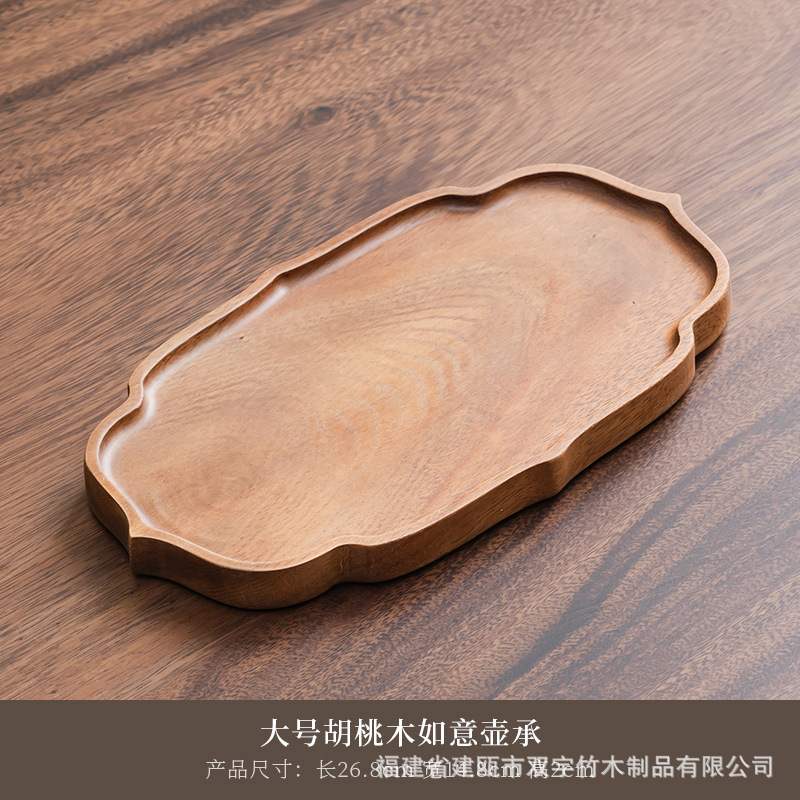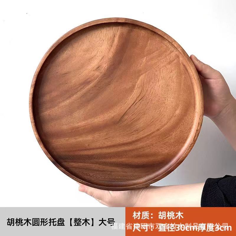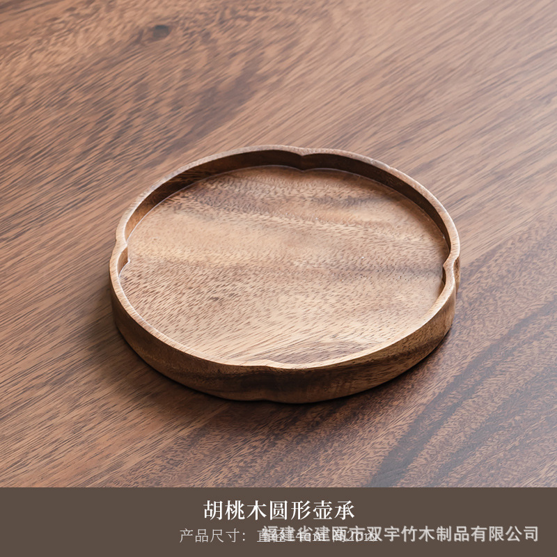 호두나무 나무 트레이 거실 원목 간식 케이크 차 소품 작은 원형 트레이 차 트레이 식기 트레이 도매 중국풍스토어 가기